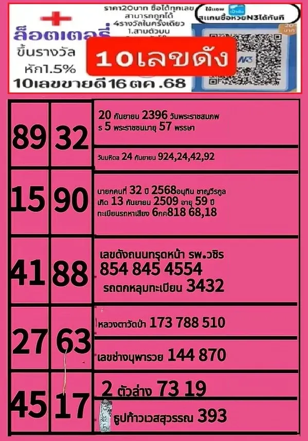 10 เลขขายดี "+ ล็อตเตอรี่" งวดวันที่ 16 ตุลาคม 68..เลขไหนเด็ด ส่องเลย!