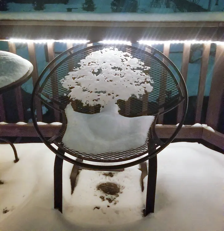 5. หิมะที่กำลังละลายบนเก้าอี้ตัวนี้ดูเหมือนภาพวาดต้นไม้เลย