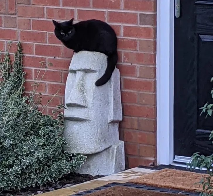 12. เจ้าแมวดำตัวนี้ทำให้รูปปั้นนี้ดูเหมือนเอลวิส