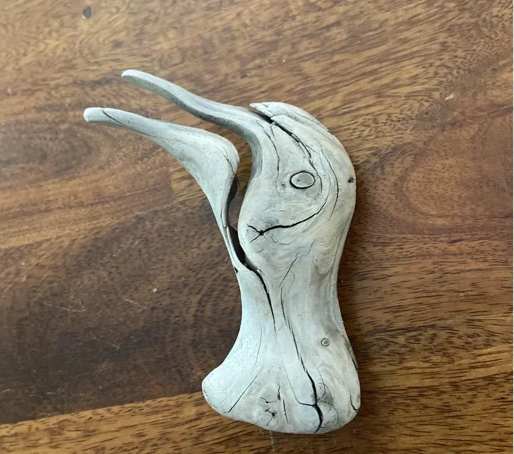 16. นี่เป็นชิ้นไม้ที่ลอยมาตามน้ำที่ฉันเก็บได้ ซึ่งมีลักษณะเหมือนนกนางนวล