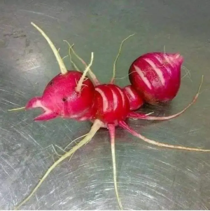 6. หัวผักกาดหัวนี้ที่ดูเหมือนกับปลาที่ถูกเบ็ดตกขึ้นมา