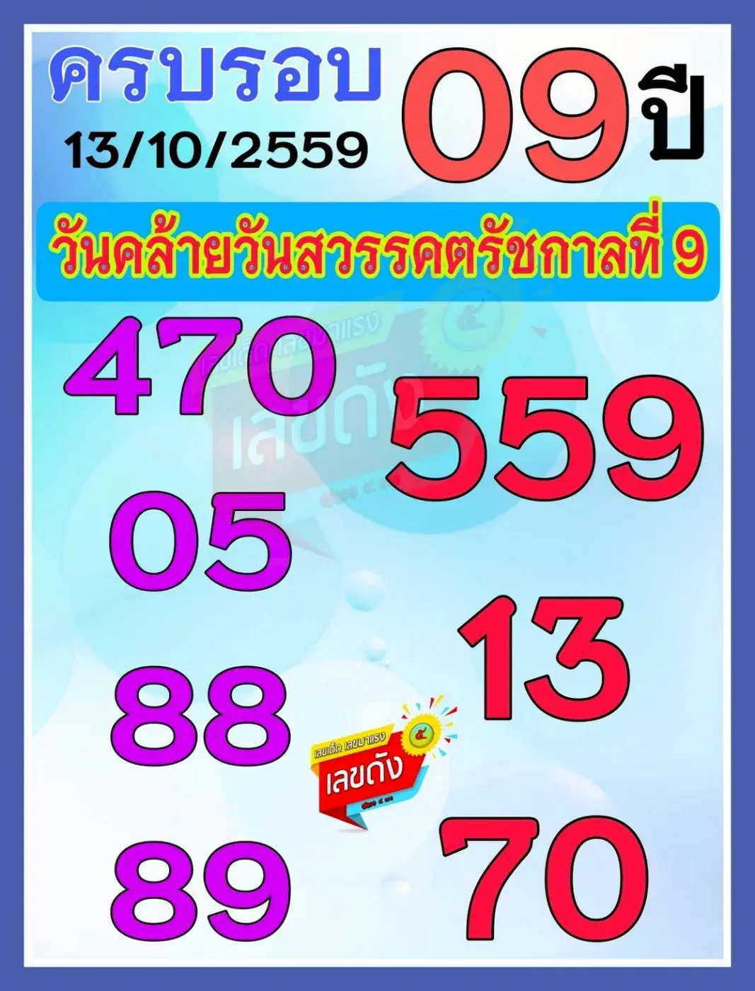 "เลขเด็ดเลขดังวันสำคัญ" ชื่อนี้ก็ไม่เคยเป็นสองรองสำนักไหนๆ เลขดังวันสำคัญขายดี ก็มีแต่คนเฝ้ารอกันมากมาย ให้ทั้งเลขเด่นและเลขท้าย 2 ตัว และ 3 ตัวแบบเน้นๆ ใครเห็นก็บอกว่าใช่ สำหรับใครที่ยังไม่มีข้อมูล หรือลอตเตอรี่ ก็รีบนำเอาแนวทางเหล่านี้ไปใช้กันได้เลยเราขอแนะนำ แต่ก็โปรดใช้วิจารณญานกันด้วยนะ เพราะว่าการเสี่ยงโชคก็ย่อมมีความเสี่ยงเสมอ ควรศึกษาข้อมูลให้รอบคอบก่อนทำการตัดสินใจซื้อหวย และไม่เบียดเบียนตนเอง และคนอื่นๆ ด้วย เชื่อว่าถ้าทำแบบนี้รับรองโชคดีมาแน่นอน ว่าแต่งวดนี้มีตัวเลขใหนที่น่าสนใจกันบ้าง พร้อมหรือยัง ถ้าพร้อมแล้วเราตามไปดูกันเลย