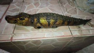 จีวรแทบปลิว! หลวงพี่ขยี้ตาซ้ำ เจอจระเข้โผล่คลองหลังกุฏิที่แท้แค่ของเล่น