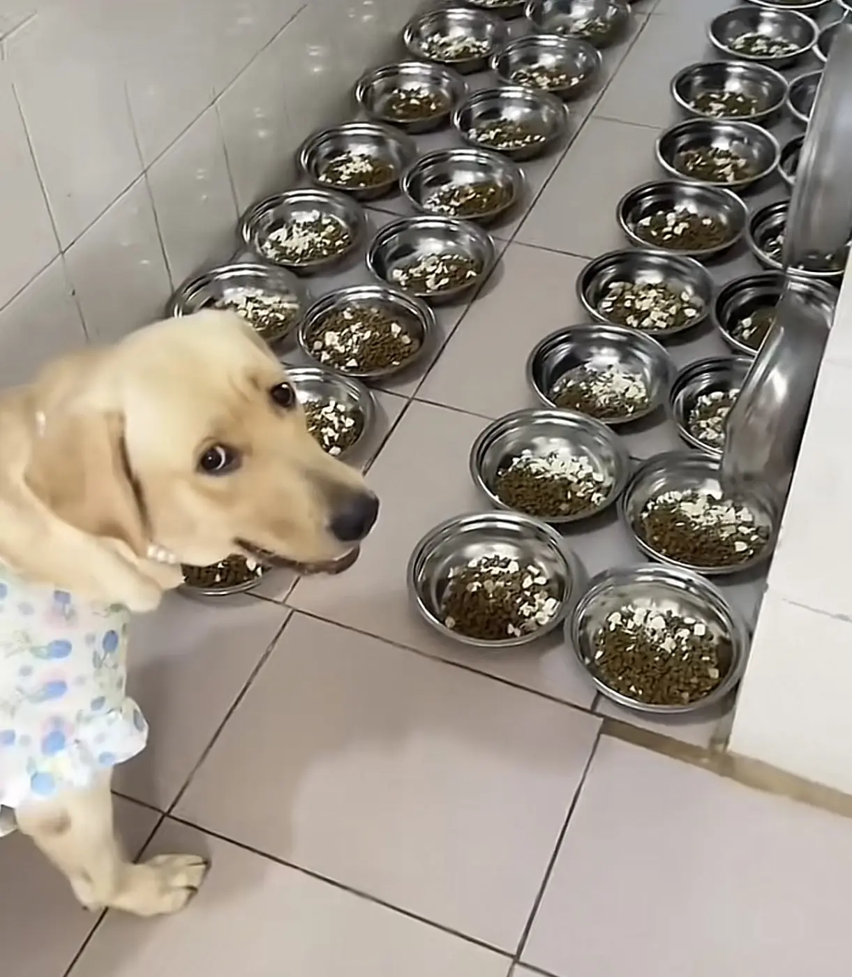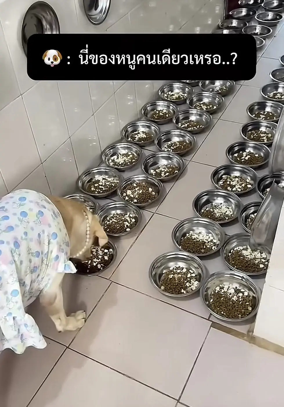 เมื่อเจ้าของแพลนจะไปเที่ยวยาว 7 วัน เลยต้องเตรียมสเบียงให้เจ้าตูบแบบจุกๆ ไปเลยทั้ง 7 วัน อาหารที่ใส่ชามเรียงแถวเป็นระเบียบ จนน้องตูบถึงกับงง นี่มันบุฟเฟต์ชัด ๆ ไม่รู้กินวันละกี่มื้อ 😂 อาหารว่าช็อกแล้ว เจอน้ำกะละมังใหญ่เข้าไปช็อกกว่า หวังว่าบ้านคงไม่เละก่อนนะ 😆