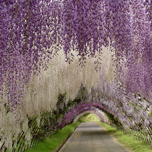 ภายในสวนดอกไม้อาชิคากะ (Ashikaga Flower Park) จังหวัดโทชิกิ ประเทศญี่ปุ่น มีต้นไม้อยู่ต้นหนึ่งที่ดึงดูดผู้คนจากทั่วโลกให้หลั่งไหลมาชมในทุกปี มันคือ “ต้นวิสทีเรียยักษ์” (The Great Wisteria) หนึ่งในสัญลักษณ์แห่งความงามตามธรรมชาติที่ทั้งยิ่งใหญ่และเต็มไปด้วยมนต์ขลัง ต้นไม้ต้นนี้มีอายุกว่า 150–160 ปี ยืนหยัดอยู่ท่ามกลางกาลเวลามายาวนานจนได้รับการขึ้นทะเบียนให้เป็นสมบัติทางธรรมชาติของจังหวัดโทชิกิ กิ่งก้านของมันเลื้อยแผ่กว้างออกไปจนกลายเป็นโครงไม้เลื้อย (trellis) ขนาดมหึมา ครอบคลุมพื้นที่เกือบหนึ่งพันตารางเมตร หรือเทียบได้กับเสื่อทาทามิราวหกร้อยผืน ความยิ่งใหญ่ของมันทำให้ผู้มาเยือนรู้สึกเสมือนกำลังยืนอยู่ใต้หลังคาแห่งดอกไม้ที่โอบล้อมด้วยสีม่วงละมุน