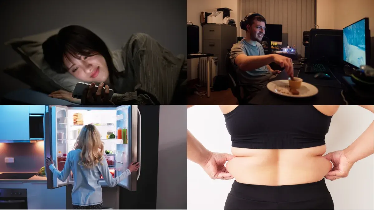 การนอนดึก นอนน้อย นอนไม่พอ ส่งผลให้ร่างกายหลั่งฮอร์โมนที่เกี่ยวข้องกับพฤติกรรมการรับประทานอาหารให้มีปริมาณมาก-น้อยไม่สมดุล โดยฮอร์โมนที่ว่านี้ ได้แก่ ฮอร์โมนคอร์ติซอล ฮอร์โมนเกรลิน และฮอร์โมนเลปติน