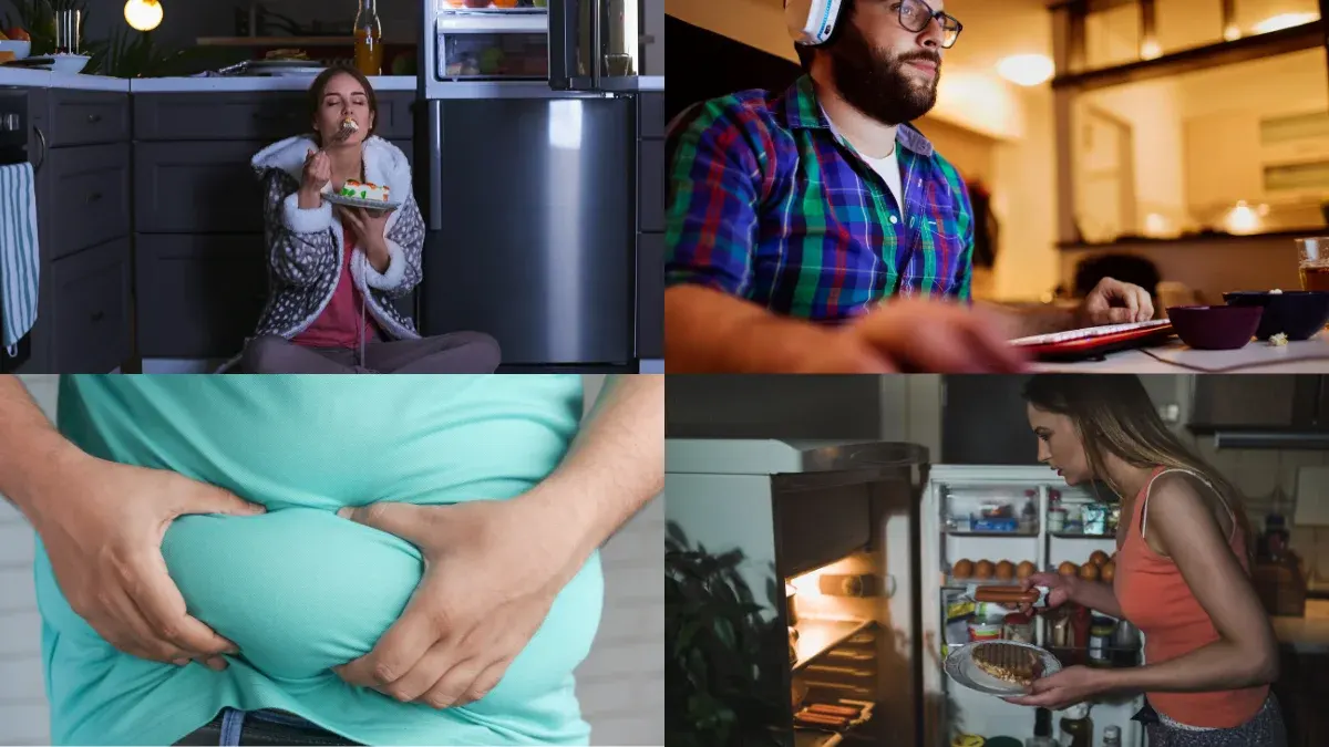 คนที่นอนดึกหรือนอนน้อยกว่า 7-8 ชั่วโมงต่อวัน ร่างกายเราจะหลั่งฮอร์โมนคอร์ติซอล (ฮอร์โมนแห่งความเครียด) มากเกินไปจนส่งผลเสียต่อร่างกาย จะส่งสัญญาณไปให้ร่างกายเก็บพลังงานไว้ใช้ ก็คือ “ไขมัน” จึงเป็นสาเหตุของนอนดึกทำให้อ้วน ฮอร์โมนคอร์ติซอลที่สูงจนเกินไป ทำให้ปริมาณของน้ำตาลและอินซูลินในเลือดไม่คงที ส่งผลให้รู้สึกอยากกินอาหารประเภทแป้ง ไขมัน และน้ำตาลเพิ่มขึ้น มักจะทำให้หลายคนรู้สึกหิวตอนดึกนั่นเอง