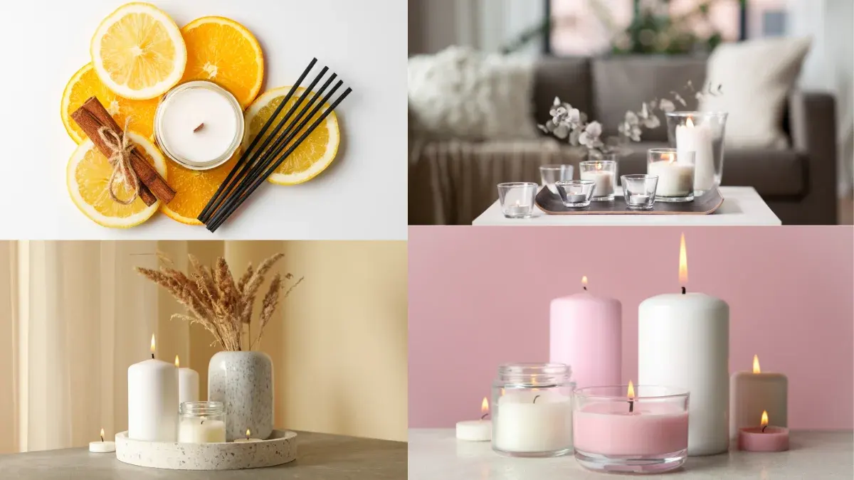 3.ลดกลิ่นไม่พึงประสงค์พร้อมเพิ่มความสดชื่น เช่น กลิ่นอับในห้อง กลิ่นอาหารที่ตกค้าง การจุดเทียนหอมโดยเลือกกลิ่นที่เน้นผลไม้รสเปรี้ยวเป็นหลัก เช่น กลิ่นซิตรัส หรือ ยูคาลิปตัส มีคุณสมบัติที่ช่วยขจัดกลิ่นไม่พึงประสงค์ ทำให้บรรยากาศสดชื่นขึ้น เหมาะสำหรับใช้งานในห้องครัวหรือห้องน้ำ