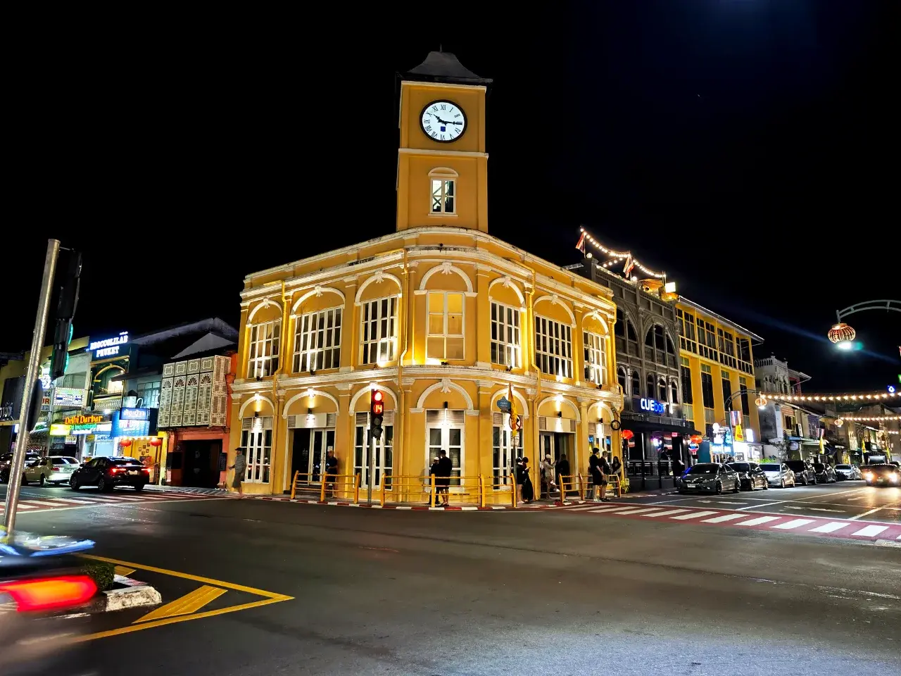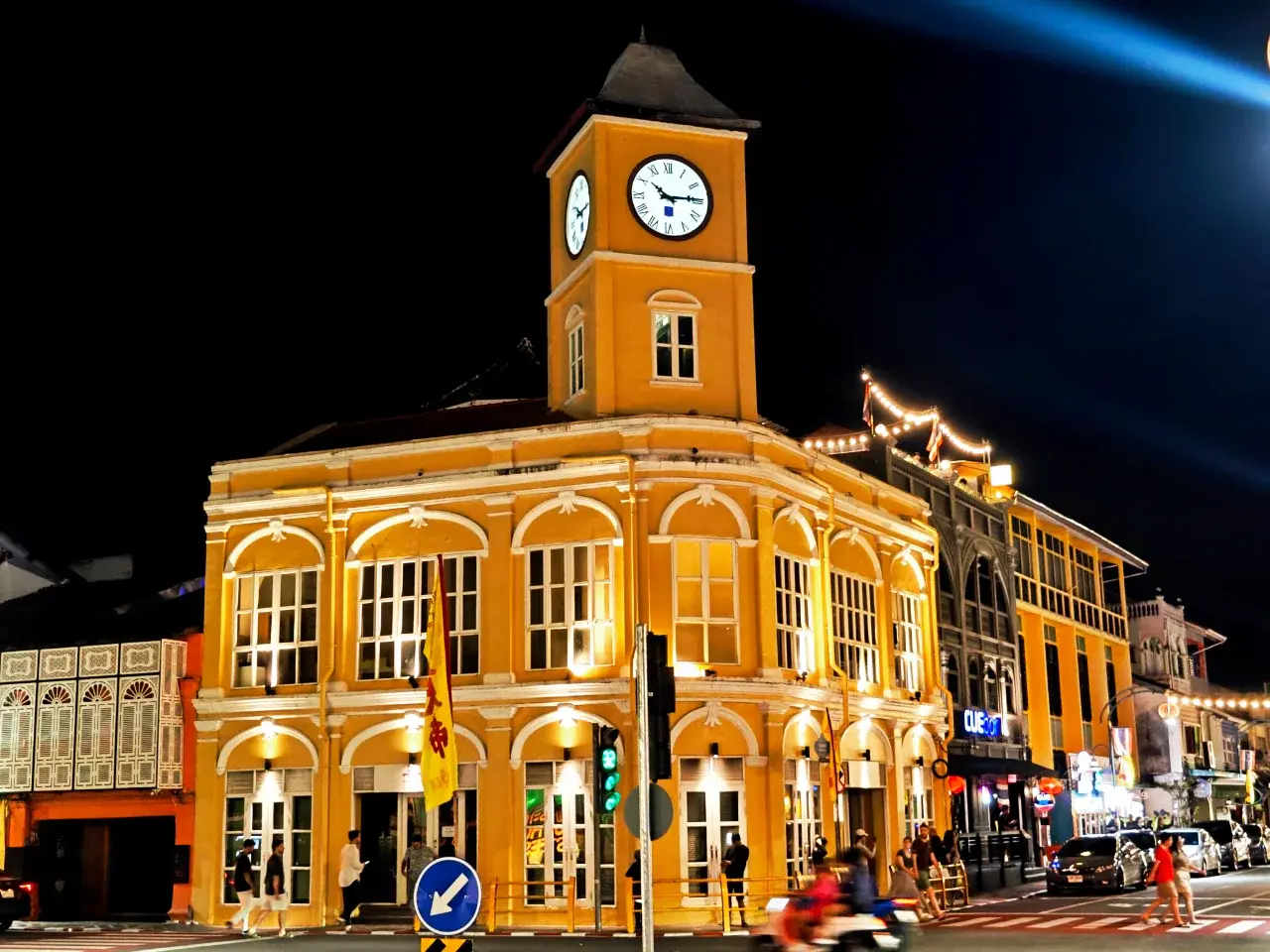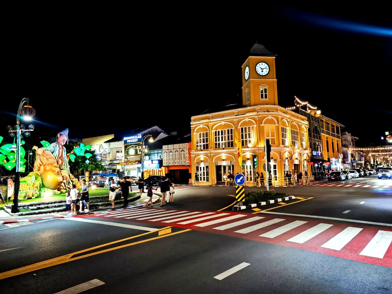 📍 พิกัด : สี่แยกธนาคารชาร์เตอร์ – หอนาฬิกาภูเก็ต (Phuket Old Town)