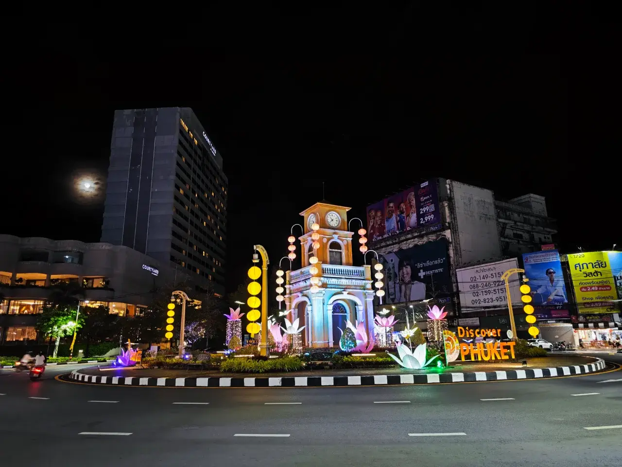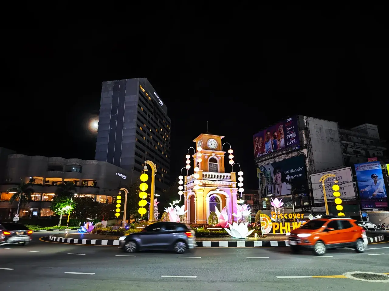 โดยเฉพาะบริเวณสี่แยกธนาคารชาร์เตอร์ และ หอนาฬิกาภูเก็ต ซึ่งถือเป็นจุดแลนด์มาร์กสำคัญของตัวเมือง