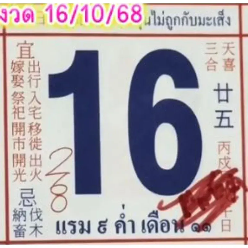 รวม เลขปฏิทินจีน งวด 16/10/68
