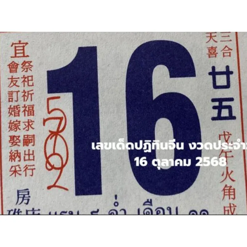 เลขปฏิทินเป็นความเชื่อของแต่ละบุคคล ไปติดตามดูเลขปฏิทินจีน งวด 16 ตุลาคม 2568