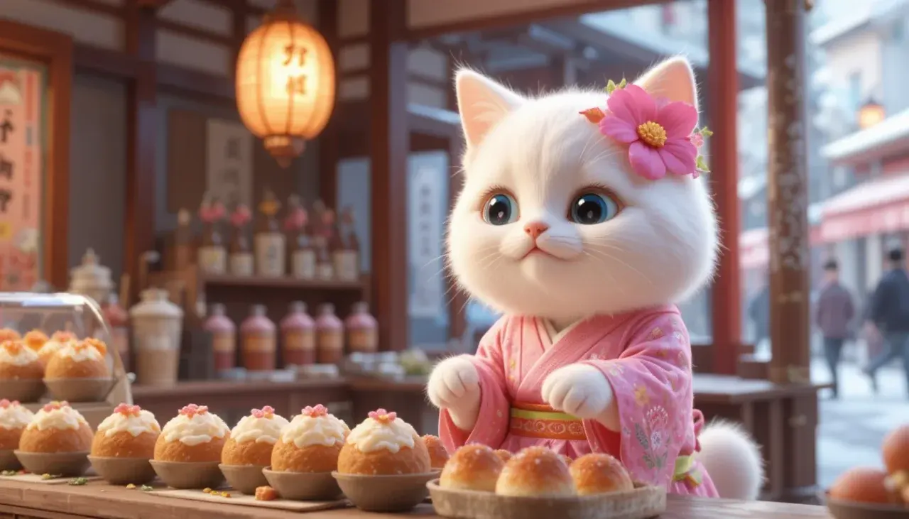 ในหมู่บ้านเล็ก ๆ กลางหุบเขาหิมะของญี่ปุ่น แมวเด็กสองตัว “โมโมะ” (Momo) สีขาว และ “ทามะ” (Tama) สีเทา พันธุ์สก๊อตติชโฟลด์ เพื่อนซี้สุดน่ารัก ได้รับหน้าที่เป็นพนักงานขายทาโกะยากิในงานเทศกาลฤดูหนาวประจำปี