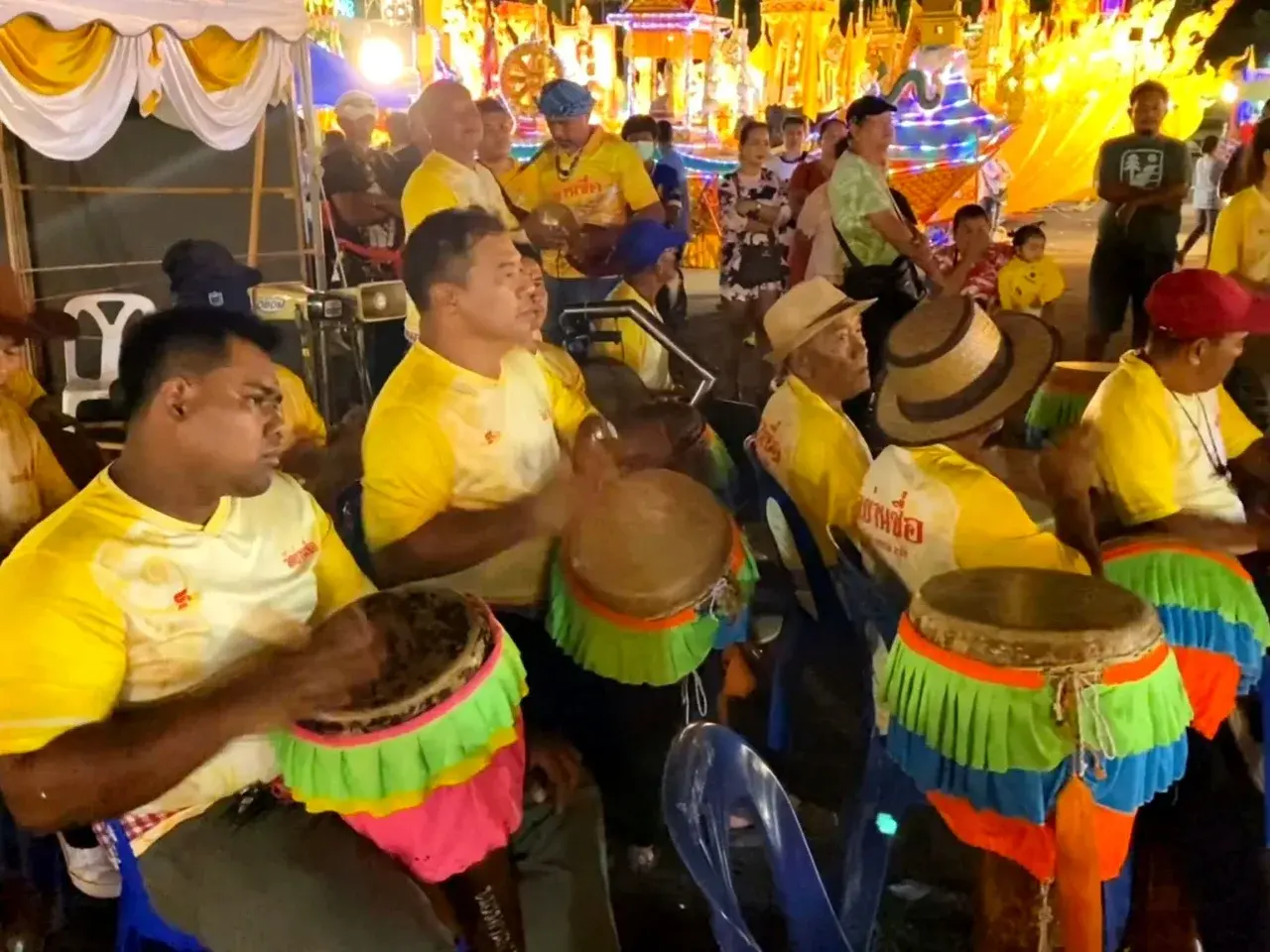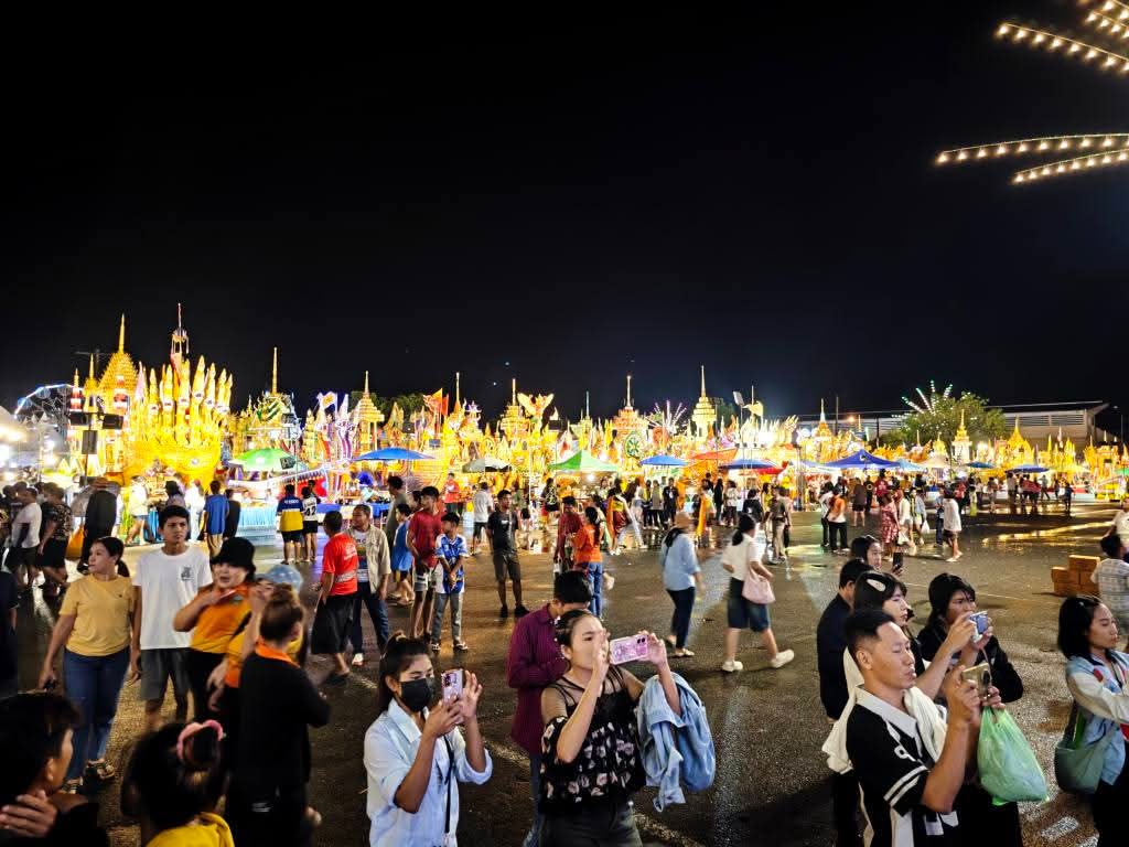 ช่วงค่ำประชาชนยังคงทยอยร่วมงานอย่างต่อเนื่อง บนเวทีมีการประกวดบทกลอนและการแสดงพื้นบ้าน ขณะที่คณะกลองยาวจากบ้านย่านซื่อ อำเภอกันตัง มาร่วมสร้างสีสันและแรงเชียร์ให้กับวัดย่านซื่อ ซึ่งปีนี้คว้ารางวัลรองชนะเลิศอันดับ 3 ในประเภทเรือพระขนาดเล็ก บรรยากาศเต็มไปด้วยความสุขและศรัทธาของชาวตรังที่ร่วมแรงร่วมใจ “ลากพระ รวมใจเป็นหนึ่งเดียว”.