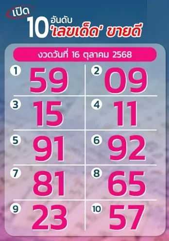 มาแล้ว! เปิด 10 อันดับเลขเด็ดขายดี งวดวันที่ 16 ตุลาคม 68..ส่องเลย พรุ่งนี้รวย!!