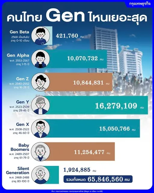 ในปี พ.ศ.2567 ไทยมีประชากรทั้งสิ้น 65.8 ล้านคน แต่ “โครงสร้างประชากร” กำลังเปลี่ยนแปลง แรงงานหลักของประเทศตอนนี้รวมกันแค่ 31 ล้านคน