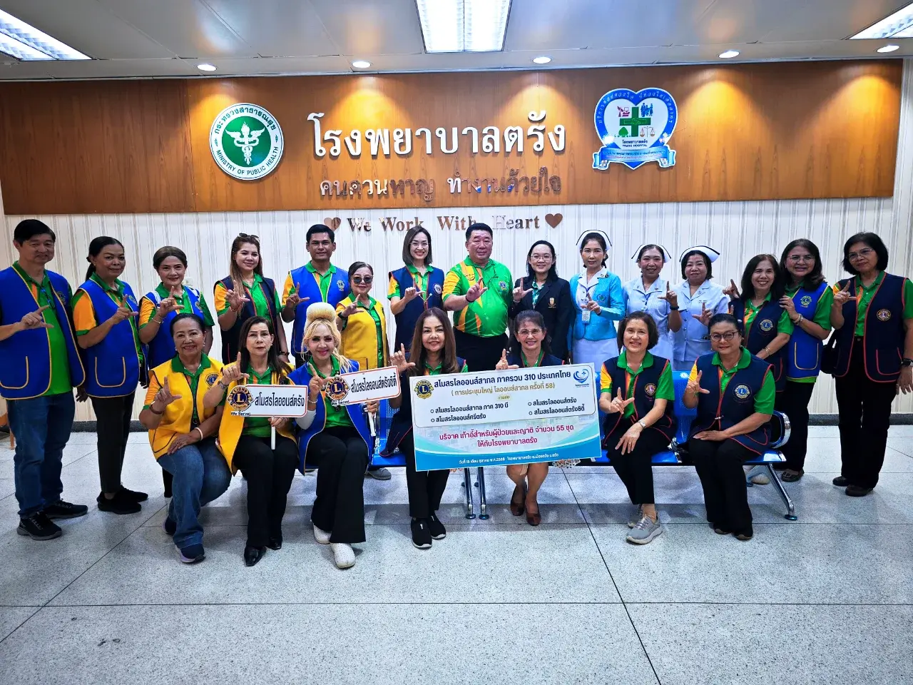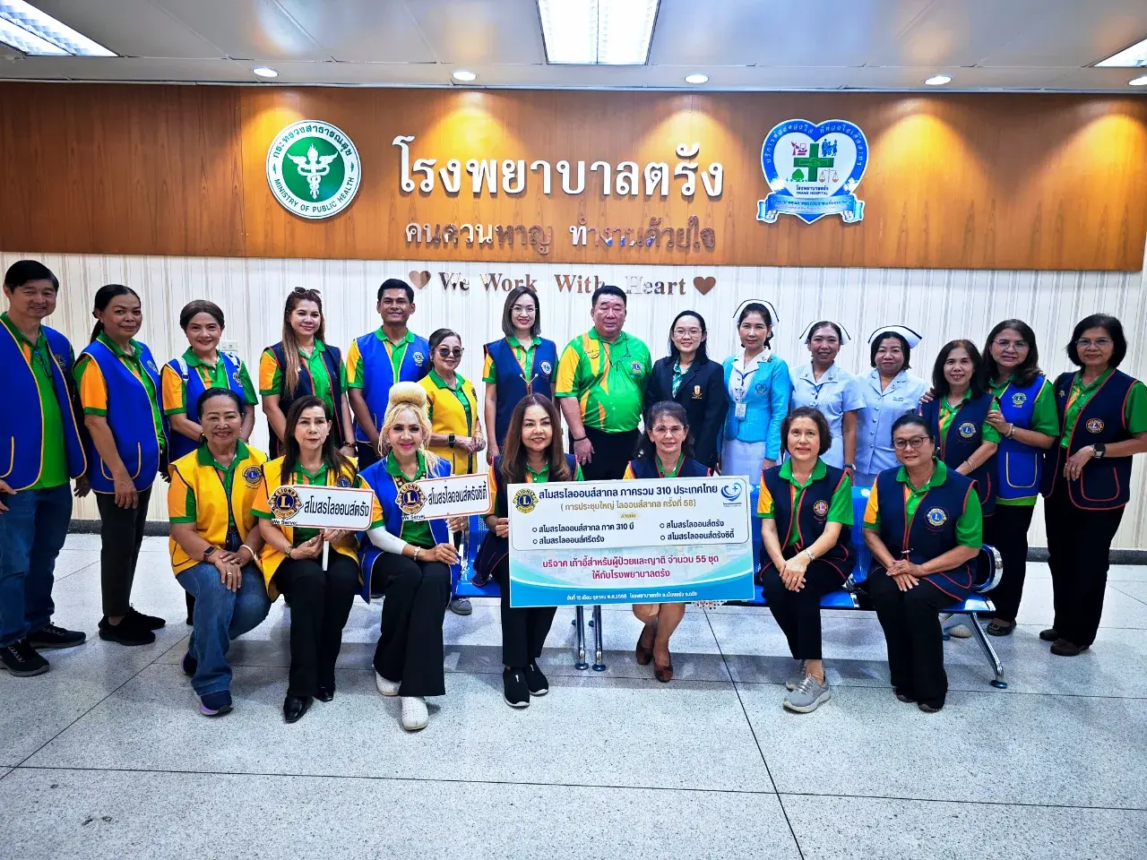เมื่อวันที่ 15 ตุลาคม 2568 สโมสรไลออนส์ศรีตรัง ร่วมกับสโมสรไลออนส์ตรังซิตี้ สโมสรไลออนสตรัง ได้ดำเนินโครงการสาธารณประโยชน์ มอบเก้าอี้แถว (เหล็ก) 3 ที่นั่ง จำนวน 55 ชุด มูลค่ารวม 150,000 บาท ให้แก่ โรงพยาบาลตรัง เพื่ออำนวยความสะดวกแก่ผู้ป่วยและญาติที่มารับบริการทางการแพทย์ในพื้นที่โรงพยาบาล