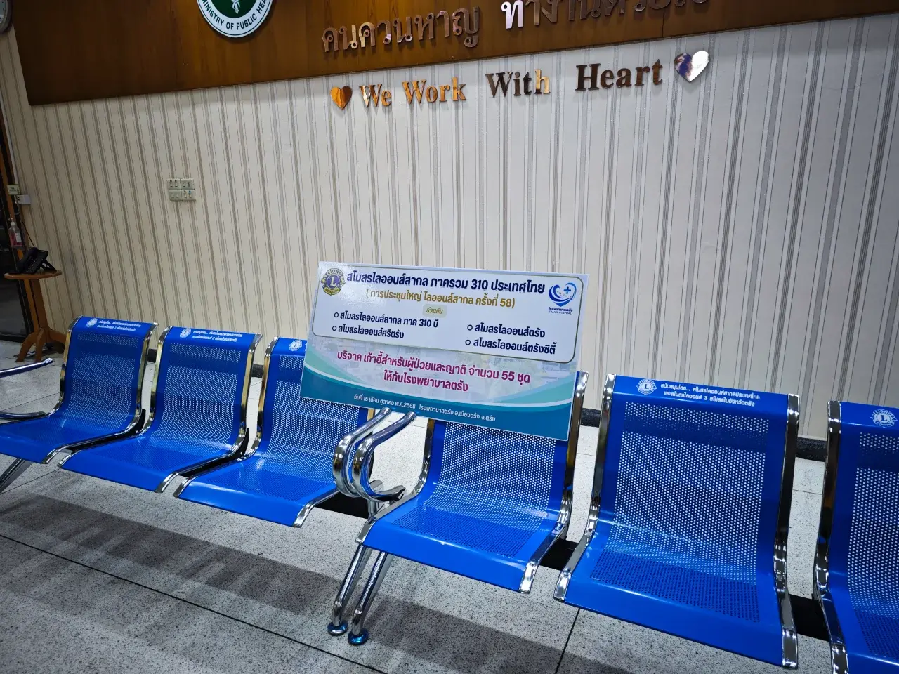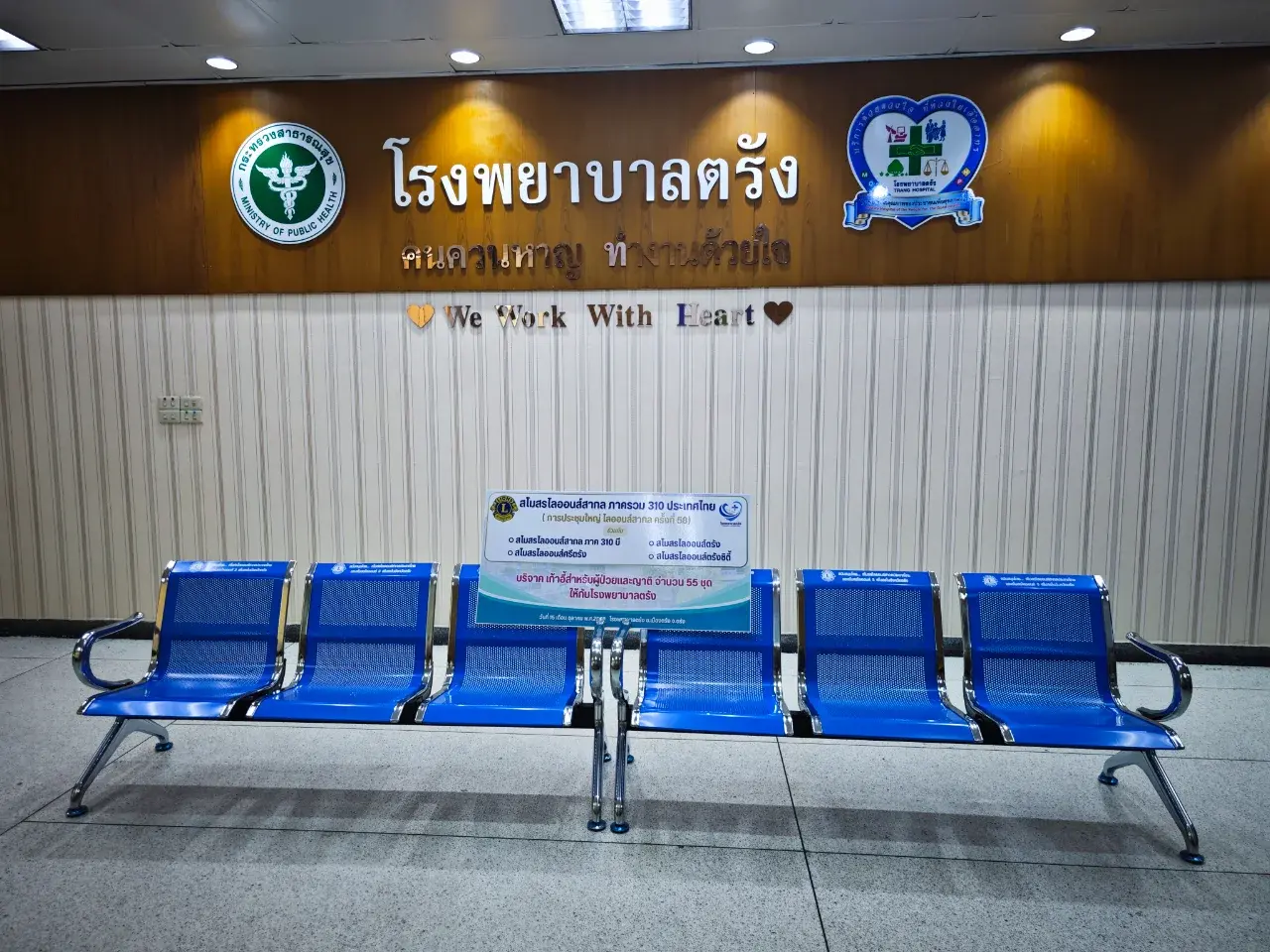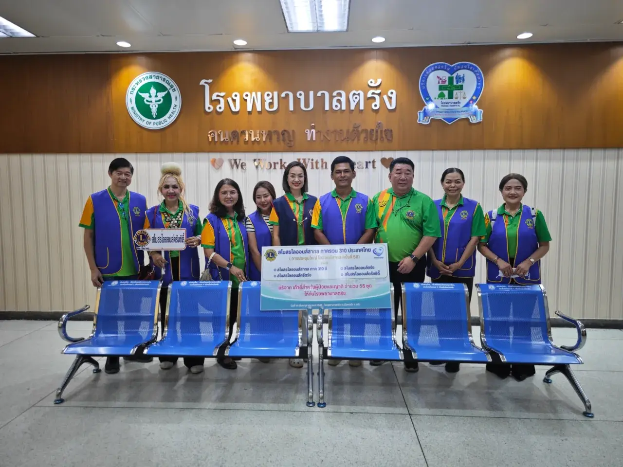 ไลออนส์ศรีตรัง มอบเก้าอี้แถว 55 ชุด มูลค่า 150,000 บาท ให้โรงพยาบาลตรัง