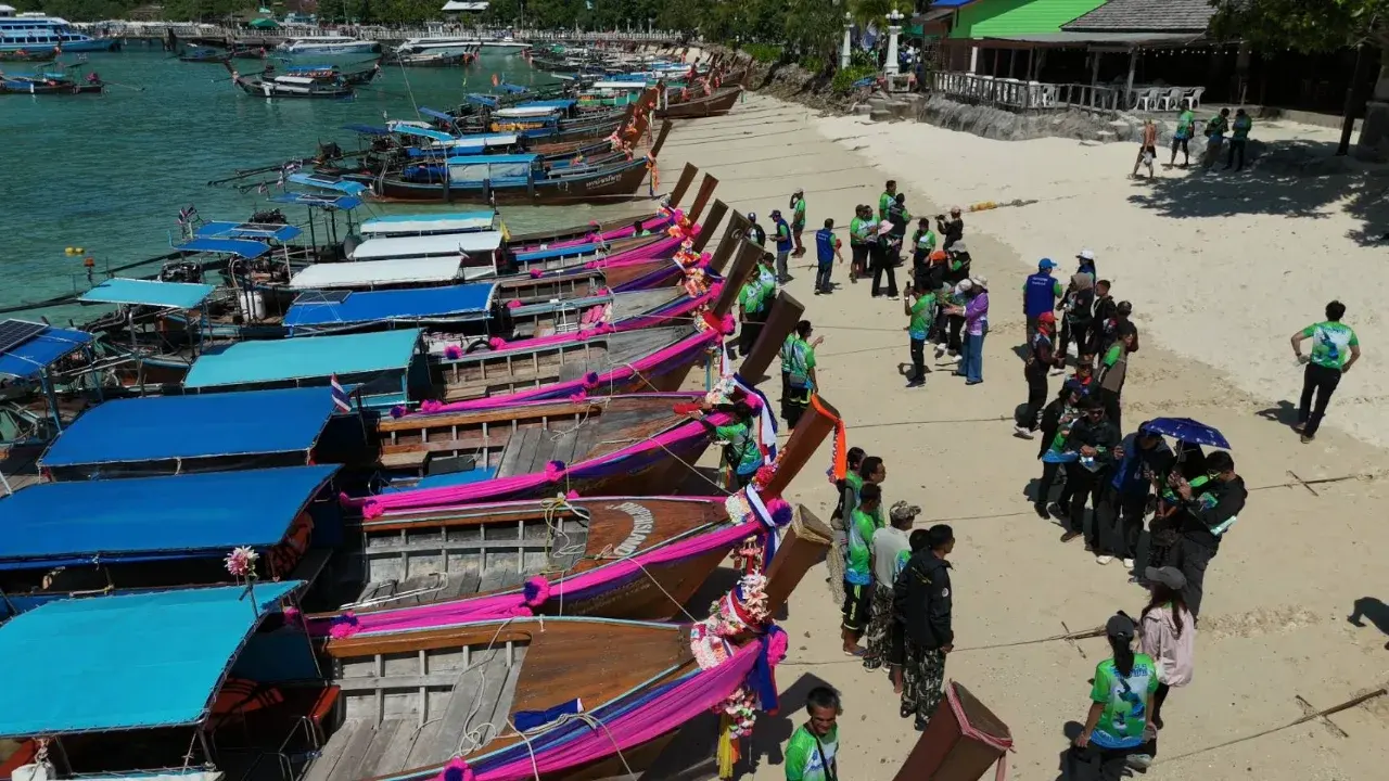 อช.พีพี ร่วมเครือข่ายภาคี จัดกิจกรรม“วันรักษ์พีพี” รวมพลังคนเกาะพีพี ทำความสะอาด-ผูกผ้าเรือหัวโทง 544 ลำ ต้อนรับไฮซีซั่น