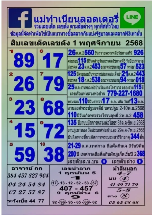 10 เลขเด็ดเลขดัง "แม่ทำเนียนลอตเตอรี่" งวดวันที่ 1 พฤศจิกายน 68 มาแล้ว!..คอหวยอย่าพลาด!!