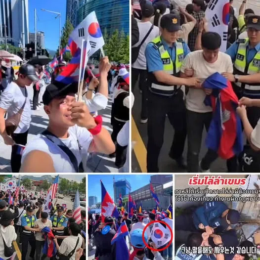 เกาหลีไม่ใช่ไทย ผีน้อยเขมรประท้วงโดนรวบกลางโซล งานนี้สังคมโลกจะมองยังไง