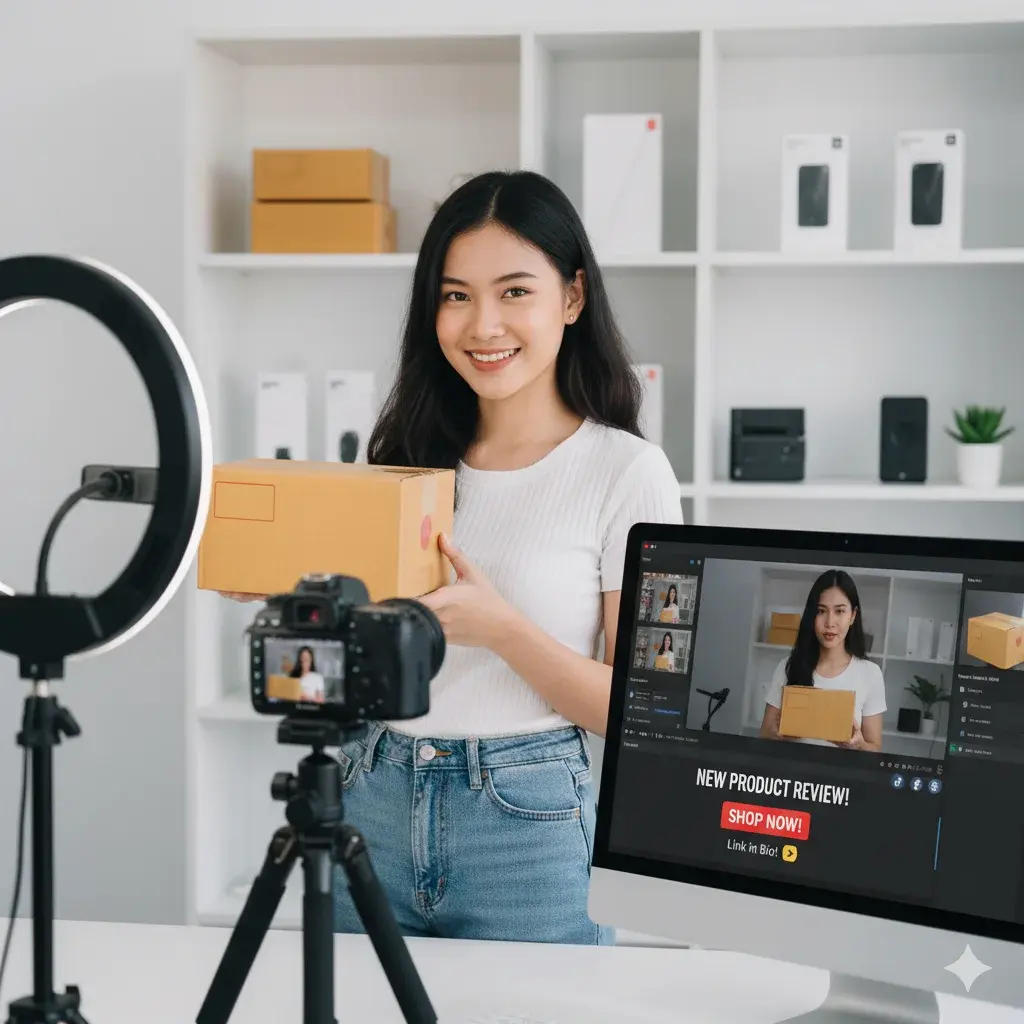 เริ่มจากอันแรกเลย คือขายสินค้าด้วย Affiliate Marketing ในแพลตฟอร์มโซเชียลต่างๆ ผู้เขียนแนะนำสินค้าบนแพลตฟอร์มออนไลน์ เช่น YouTube, TikTok, หรือ Facebook ซึ่งจะได้รายได้เป็นค่าคอมมิชชั่น เมื่อมีคนซื้อสินค้าผ่านลิงก์สินค้า