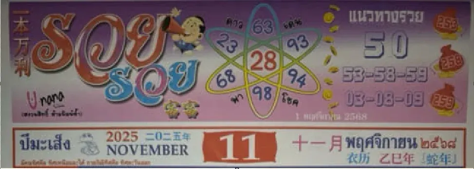 โดยแนวทางลอตเตอรี่ สำหรับ ‘ปฏิทินรวย รวย’ งวดวันที่ 1/11/68 มีดังนี้