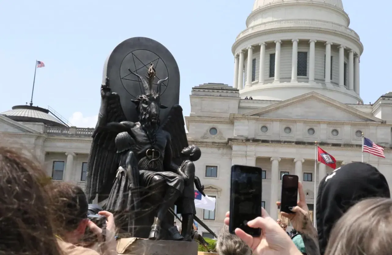 สำหรับรูปหล่อ Baphomet ขนาด 9 ฟุตของ The Satanic Temple ถูกสร้างขึ้นโดย Mark Porter นักประติมากรรมและศิลปินโลหะ เขาทำงานตามคำสั่งของ TST เพื่อนำเสนอรูปปั้นนี้ในการประท้วงทางการเมืองและเพื่อส่งเสริมเสรีภาพทางศาสนา รวมถึงการแยกศาสนาออกจากรัฐ รูปหล่อนี้ได้รับการเปิดตัวครั้งแรกที่เมืองดีทรอยต์ในปี 2015 รวมถึงนำไปติดตั้งอยู่ในพื้นที่สาธารณะของรัฐ โดยเฉพาะที่รัฐโอคลาโฮมา อย่างไรก็ตาม หลังจากที่ศาลสูงสุดของรัฐสั่งห้ามการแสดงศาสนาทั้งหมดในพื้นที่สาธารณะ ทำให้รูปหล่อนี้ไม่ได้รับอนุญาตให้ตั้งที่นั่น จึงมีการหันมาแสดงในที่อื่น ๆ เช่นที่หน้ารัฐสภาของรัฐอาร์คันซอในปี 2018