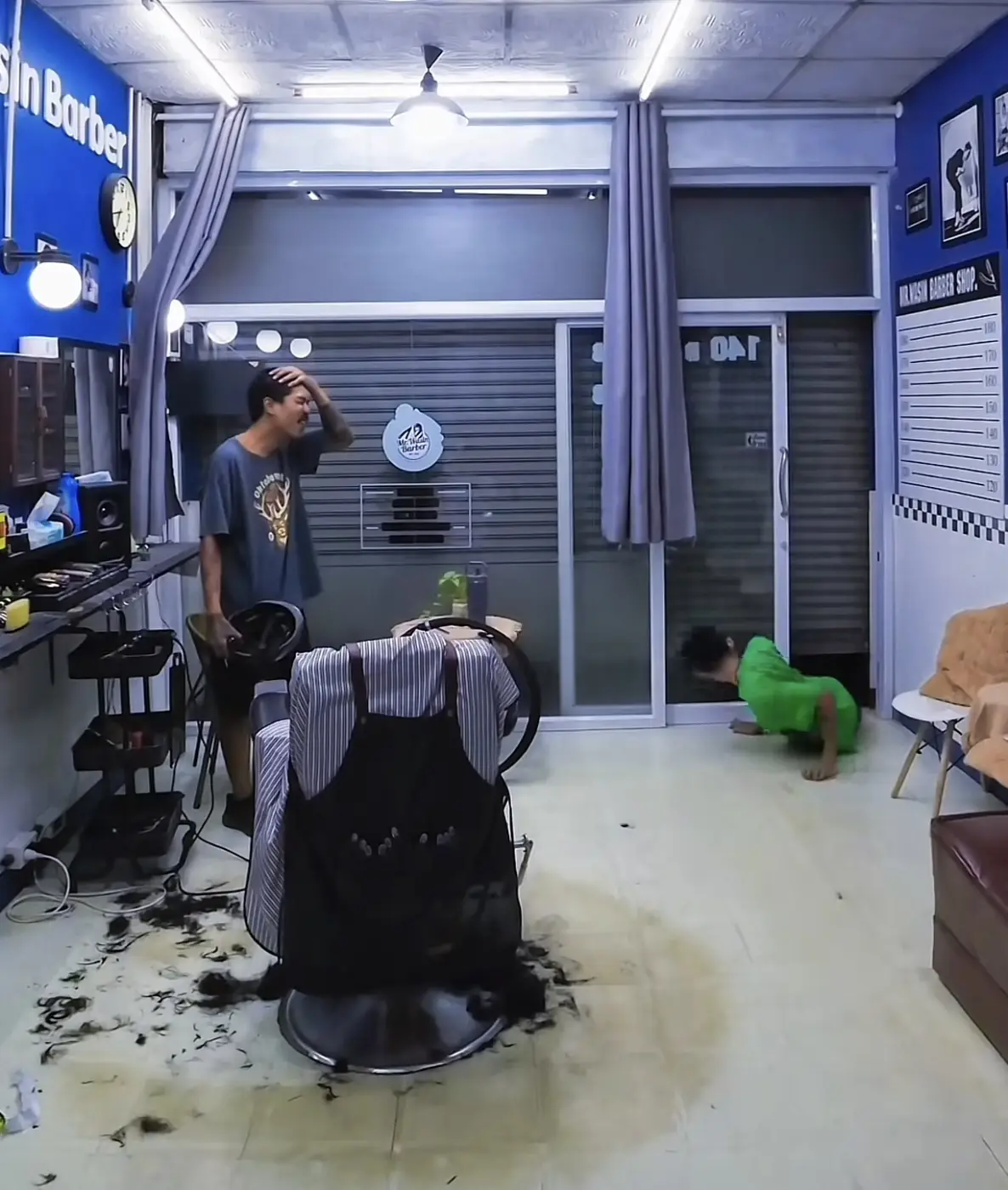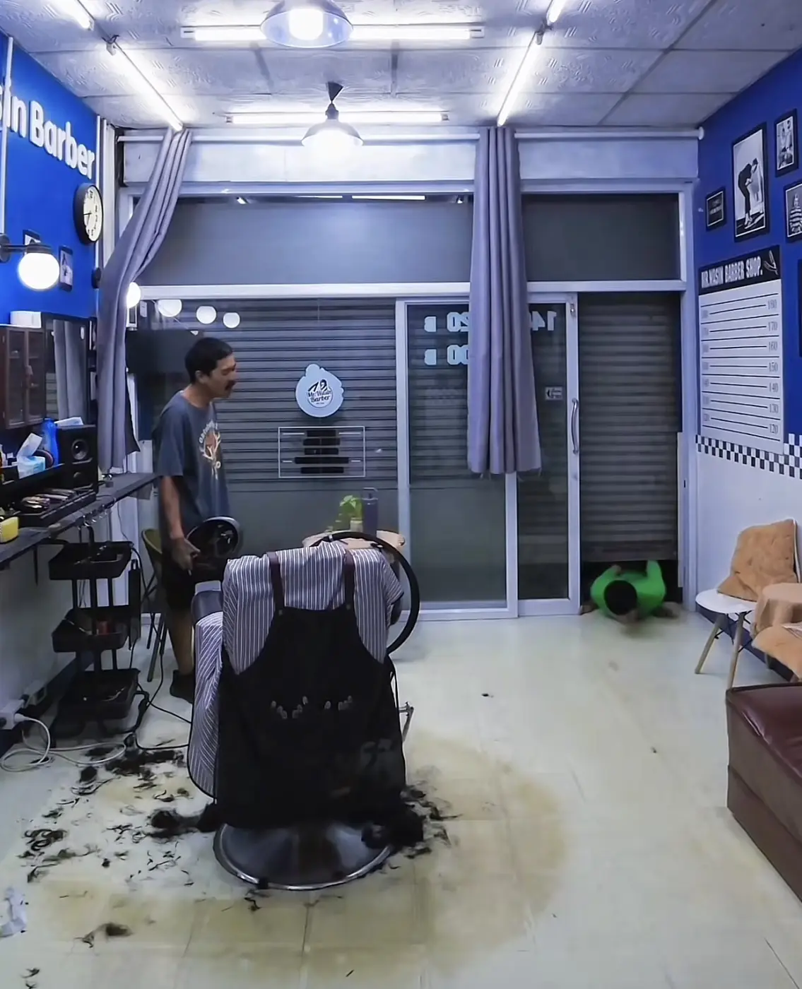 เมื่อช่างตัดผม ปิดร้าน (ไม่สนิท) ลูกค้าก็เลื้อยเข้ามาได้แบบนี้ 😂🤣