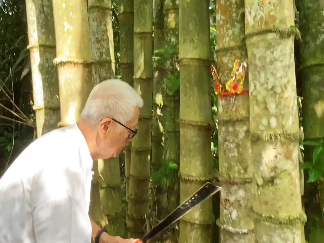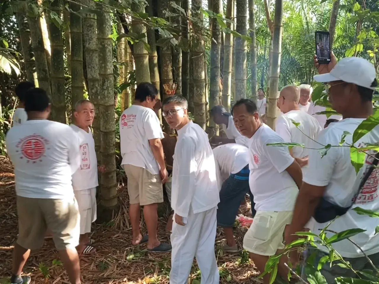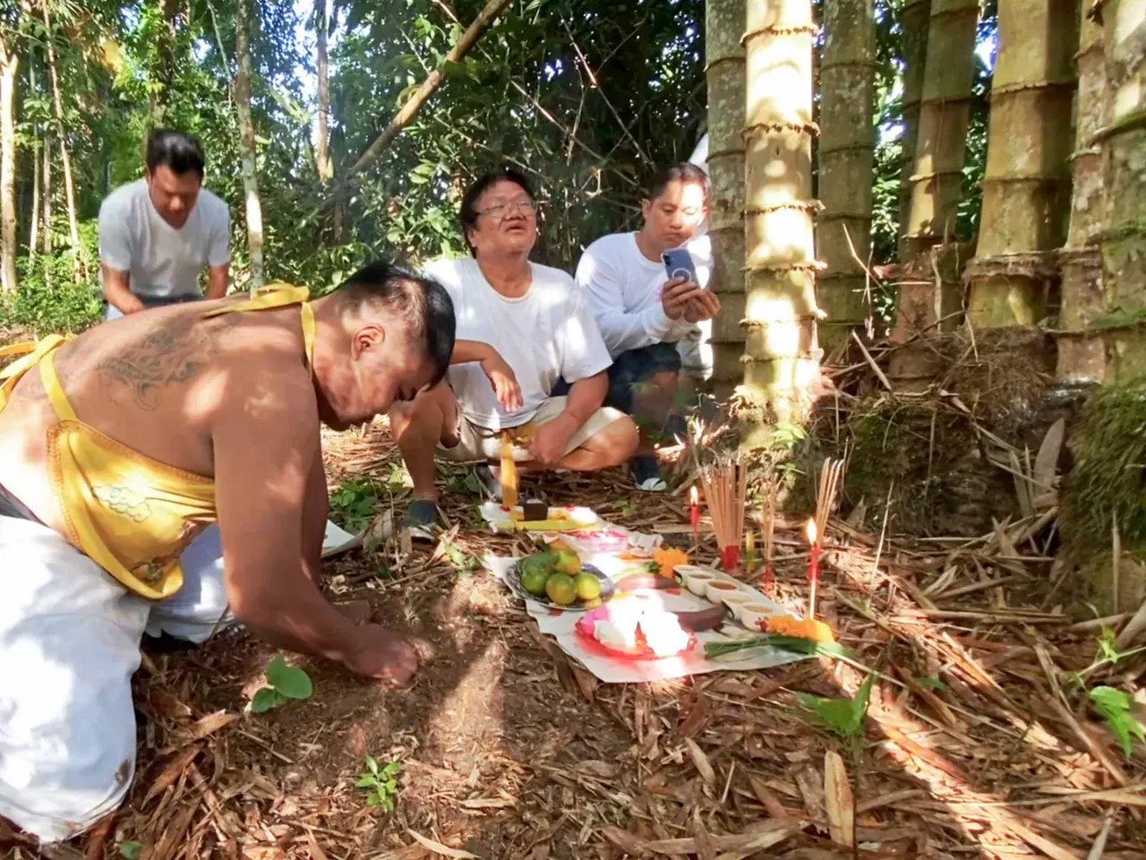 ในพิธีดังกล่าวมี พระเสือ เป็นเจ้าพิธีในการตัดต้นไผ่ ขณะที่ผู้ร่วมถือศีลกินเจได้ร่วมประกอบพิธีไหว้เจ้าป่าเจ้าเขาตามความเชื่อ เพื่อความเป็นสิริมงคล ก่อนจะเริ่มทำการตัดต้นไผ่ในเวลา 09.19 น. ซึ่งถือเป็นฤกษ์ดี