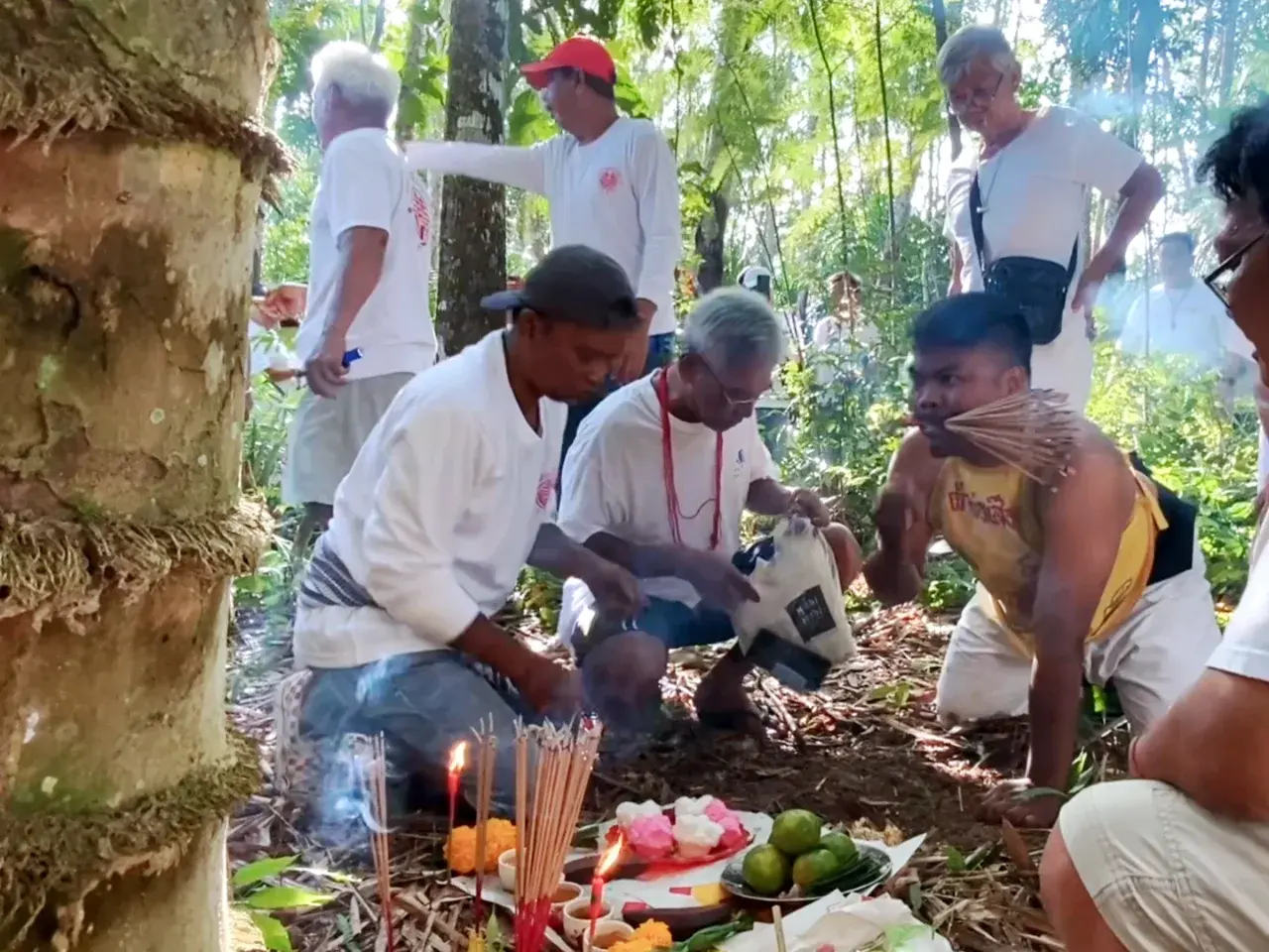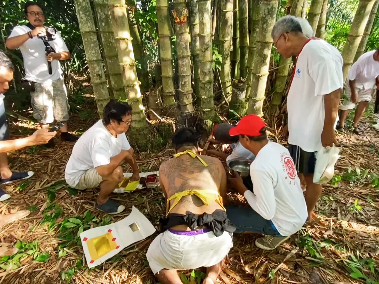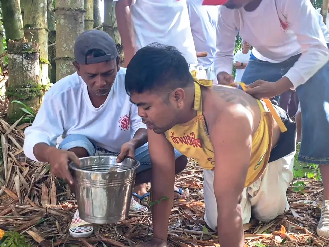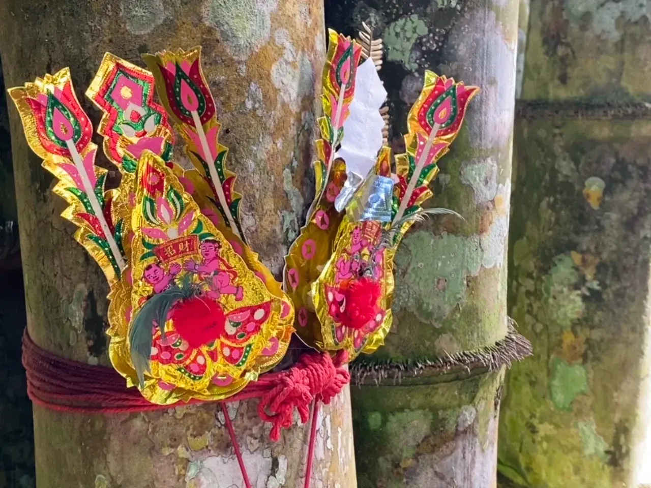 ในพิธีดังกล่าวมี พระเสือ เป็นเจ้าพิธีในการตัดต้นไผ่ ขณะที่ผู้ร่วมถือศีลกินเจได้ร่วมประกอบพิธีไหว้เจ้าป่าเจ้าเขาตามความเชื่อ เพื่อความเป็นสิริมงคล ก่อนจะเริ่มทำการตัดต้นไผ่ในเวลา 09.19 น. ซึ่งถือเป็นฤกษ์ดี