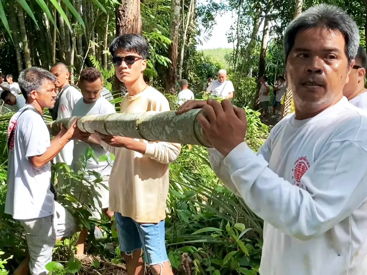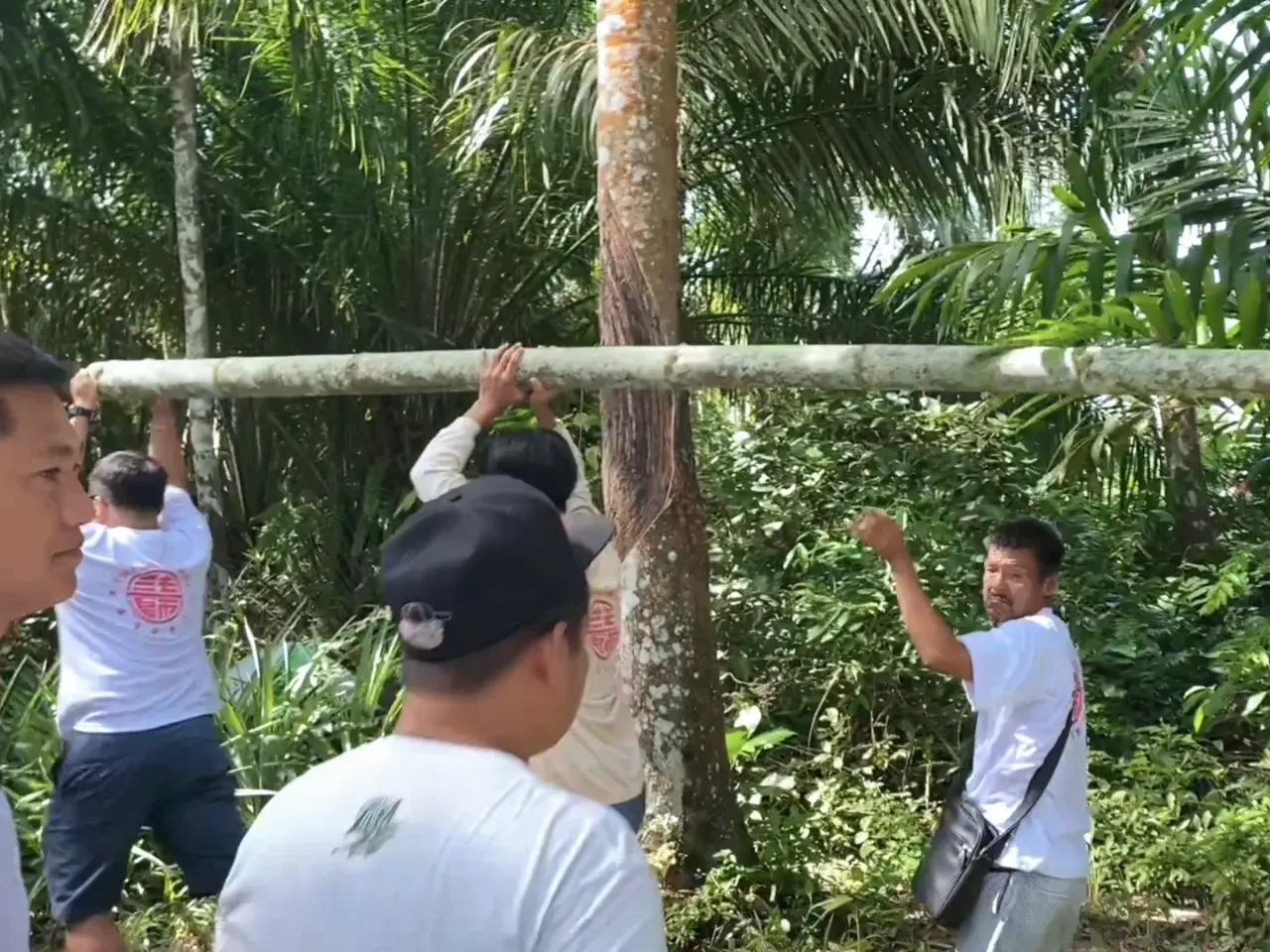 โดยปีนี้ ศาลเจ้ากิวอ๋องเอี่ย อำเภอเมืองตรัง เดินทางไปตัดต้นไผ่ในพื้นที่ตำบลลำภูรา อำเภอห้วยยอด