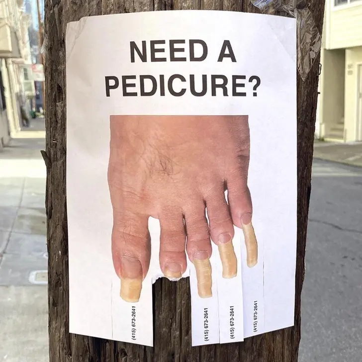 1. โปสเตอร์ร้านทำเล็บท้องถิ่น หากคุณสนใจก็ฉีกเบอร์โทรไปได้เลย