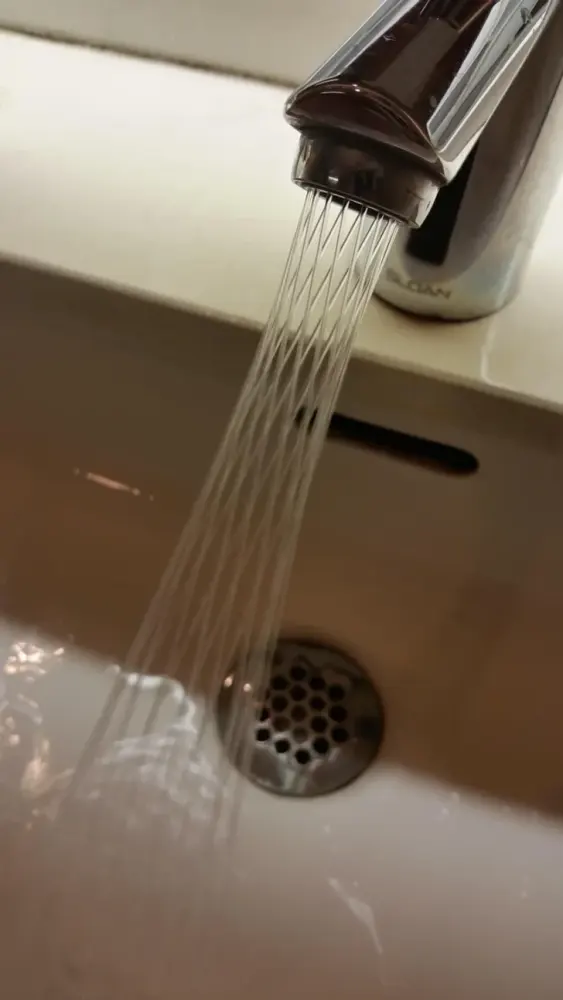 15. ก๊อกน้ำที่จ่ายน้ำจากด้านบนที่เปิดโล่ง