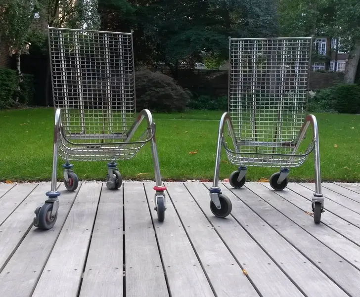 12. นี่เป็นเก้าอี้ในสวนของฉันที่ทำจากรถเข็นช็อปปิ้ง