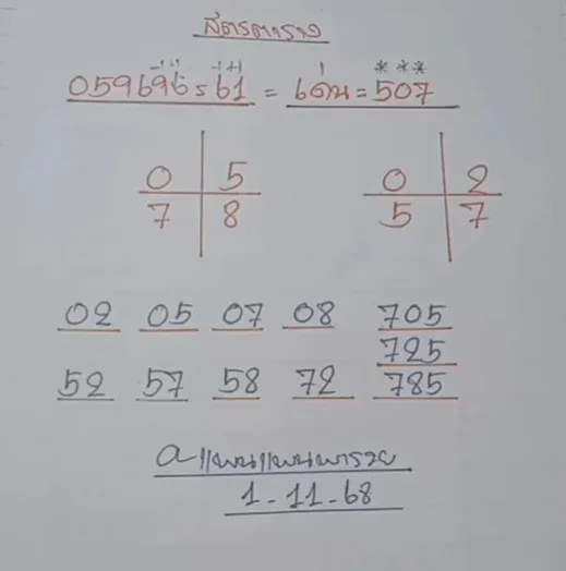 เลขที่น่าสนใจในงวดวันเสาร์ ที่ 1 พฤศจิกายน 68 นี้ ให้เลขเด่น คือ 5 - 0 - 7 สำหรับเลขท้าย 2 ตัวมีดังนี้ 02 - 05 - 07 - 08 - 52 - 57 - 58 - 72 และเลขท้าย 3 ตัว คือ 705 - 725 - 785 แต่อย่างไรก็ดี แนวทางข้างต้นนี้ก็เป็นการคำนวณตามหลักสถิติเท่านั้น ยังไงก็ได้โปรดใช้วิจารณญาณในการรับชมข้อมูลกันด้วย และก็ควรที่จะซื้อหวยกันแต่พอดี เพราะการเสี่ยงโชคก็ย่อมมีความเสี่ยงตามมา สุดท้ายนี้ก็ขอให้ทุกท่านโชคดีร่ำรวยและถูกหวยตลอดไป