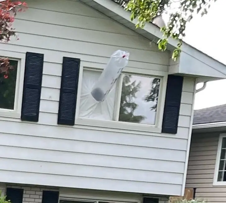 4. นี่มันคืออะไรเนี่ย ? มันดูเหมือนถุงพลาสติกที่พองลมแล้วโผล่ออกมาจากหน้าต่างบ้านหลังหนึ่งบนถนนบ้านฉัน