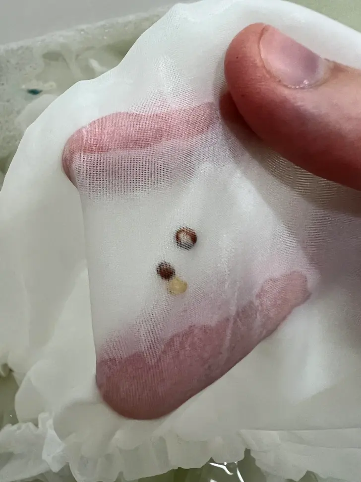 9. เจอสิ่งกลม ๆ เล็ก ๆ พวกนี้เย็บติดกับระบายของชุดเดรสในยุค 70 ขณะทำความสะอาด พวกมันแข็งและเล็กกว่ากานพลูเล็กน้อย แถมยังมีสีต่างกันด้วย