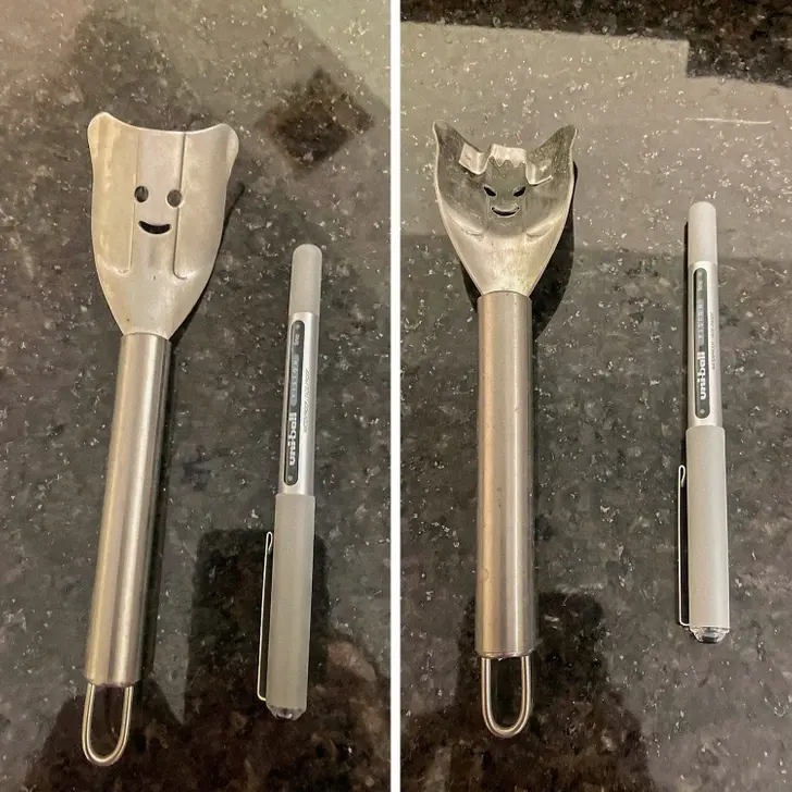 11. ฉันเดาว่าสิ่งนี้น่าจะเป็นอุปกรณ์ครัวที่ทำด้วยโลหะและมีขาแหลมอยู่ด้านหลังใช่ไหม ?