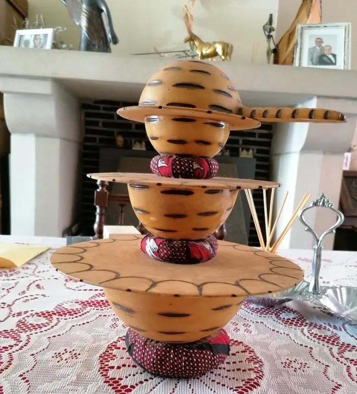 คำตอบชาวเน็ต : มันเป็นชุดชามค่ะ ส่วนบนเหมือนช้อนสำหรับใช้ดื่มหรือตักอาหาร ส่วนชามอื่น ๆ ข้างล่างดูเหมือนชามธรรมดาค่ะ คุณวางชามบนแผ่นรองสีแดงนั่นได้