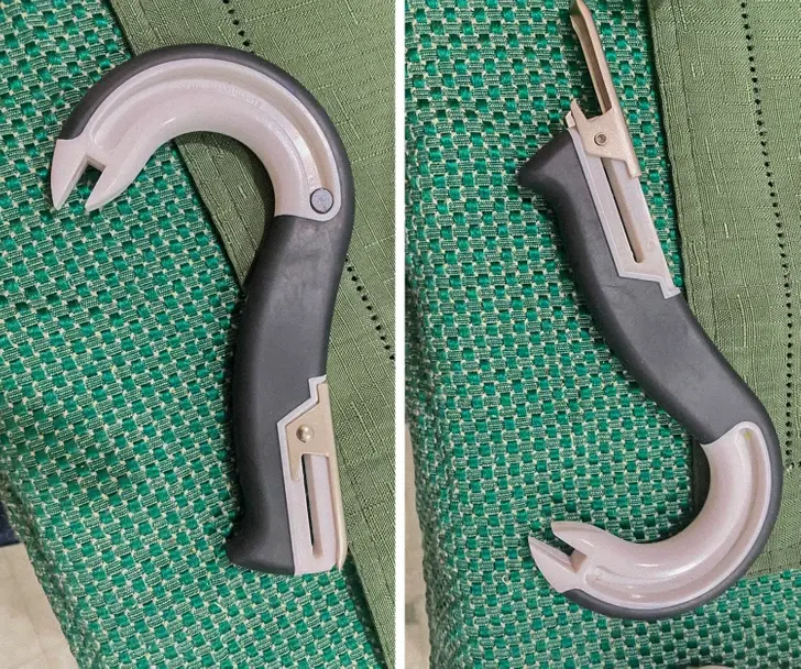 มันใช้ยึดหมุดที่ใช้ตอกพรมลงขณะที่คุณยืดพรมด้วยเปล ร่องโค้งคือจุดที่ใส่หมุดเมื่อพร้อมแล้ว จากนั้นก็ตอกลงไป