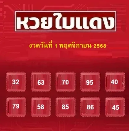 10 เลขฮิต "หวยใบแดง" งวดวันที่ 1 พฤศจิกายน 68 มาแล้ว!..คอหวยห้ามพลาด!!