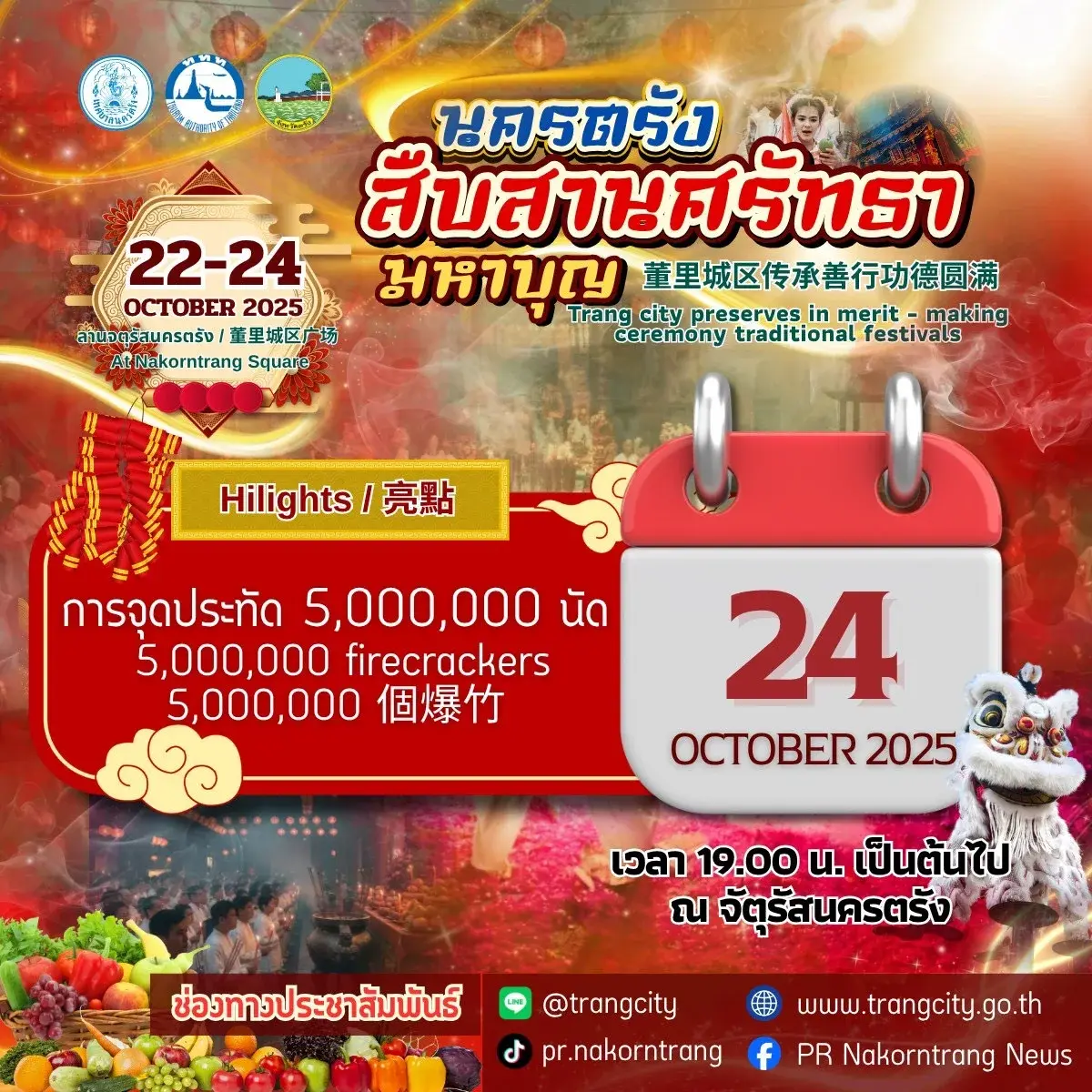 “นครตรัง สืบสานศรัทธา มหาบุญ” ระหว่างวันที่ 21 – 29 ตุลาคม 2568