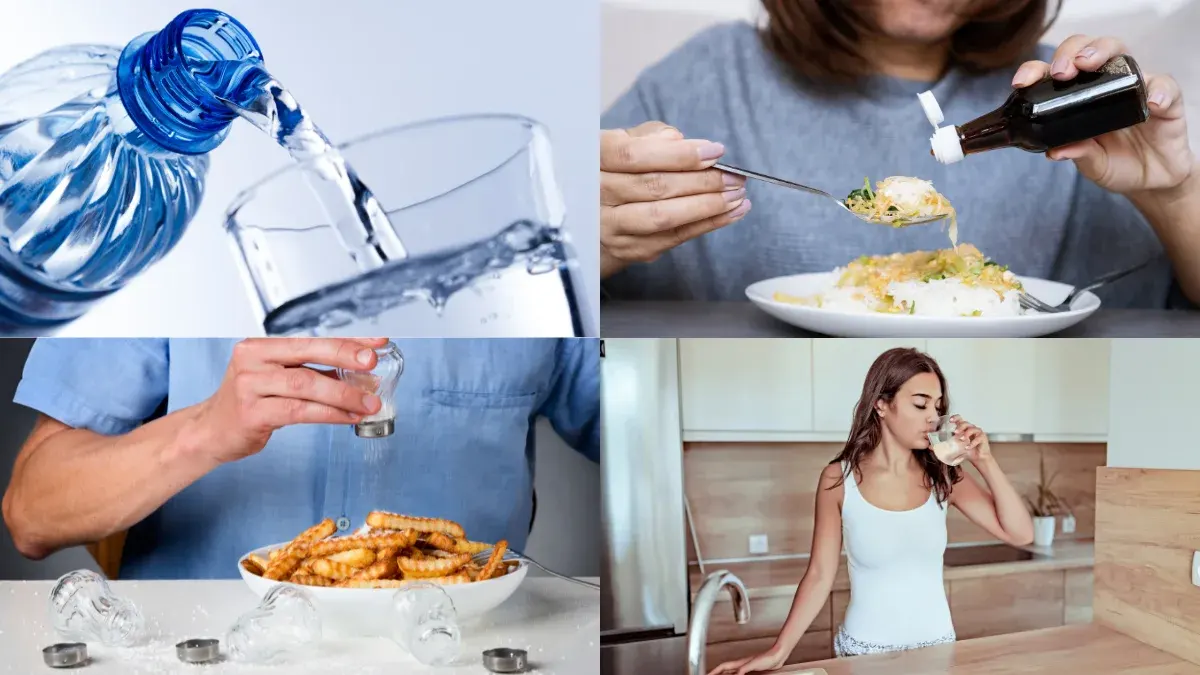 4.กินโซเดียมมากเกินไป American Heart Association (AHA) อธิบายว่า เมื่อมีปริมาณโซเดียมมากเกินไป ในกระแสเลือดจะส่งผลให้ร่างกายจะทำการกักเก็บน้ำเข้าสู่หลอดเลือดมากขึ้นโดยอัตโนมัติ ไม่เพียงแต่จะทำให้น้ำหนักขึ้นชั่วคราวเท่านั้น แต่ยังเป็นปัจจัยเสี่ยงในการเป็นโรคความดันโลหิตสูงอีกด้วย ร่างกายคนเราสามารถรับปริมาณโซเดียมได้ไม่เกิน 2,000 มิลลิกรัมต่อวัน