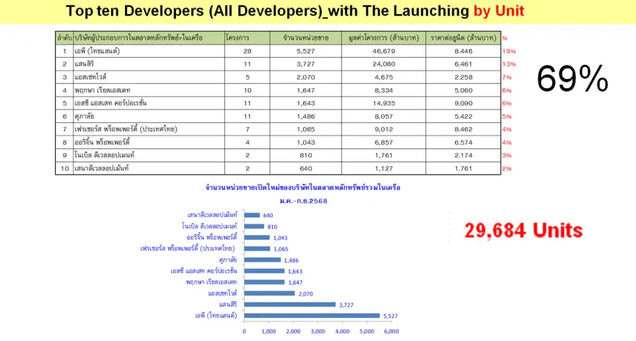 1. ในจำนวน 181 โครงการที่เปิดใหม่นี้ รวมจำนวน 29,684หน่วย รวมมูลค่าถึง 195,132 ล้านบาทเท่ากับหน่วยหนึ่งเป็นเงิน 6.574 ล้านบาทในเขตกรุงเทพมหานครและปริมณฑล การเปิดตัวค่อนข้างคึกคักในช่วงตั้งแต่เดือนกรกฎาคม 2568 เป็นต้นมารวม 3 เดือนต่อเนื่อง ส่วนเดือนที่ซบเซาก็คือเดือนมกราคม 2568 เพราะเปิดตัวไปมากแล้วในเดือนธันวาคม 2567 และเดือนเมษายน 2568 ซึ่งมีวันหยุดเป็นจำนวนมาก คาดว่าในเดือนตุลาคม พฤศจิกายนและธันวาคม น่าจะมีความคึกคักมากเป็นพิเศษ