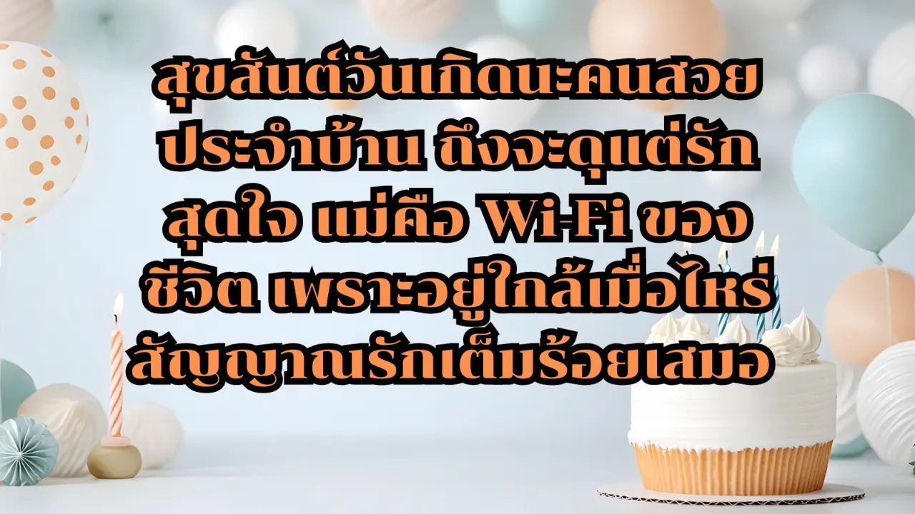 1.“สุขสันต์วันเกิดนะคนสวยประจำบ้าน ถึงจะดุแต่รักสุดใจ แม่คือ Wi-Fi ของชีวิต เพราะอยู่ใกล้เมื่อไหร่สัญญาณรักเต็มร้อยเสมอ ”