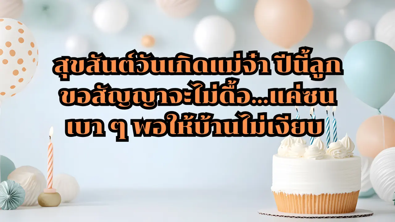 2.“สุขสันต์วันเกิดแม่จ๋า ปีนี้ลูกขอสัญญาจะไม่ดื้อ…แค่ซนเบา ๆ พอให้บ้านไม่เงียบ ”