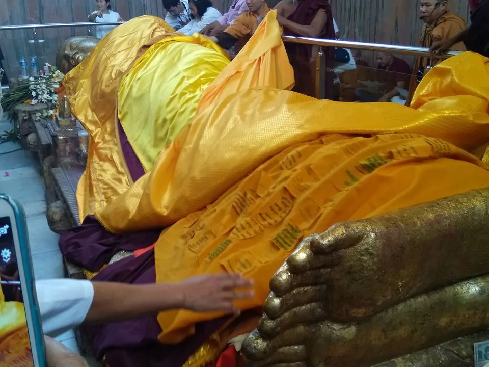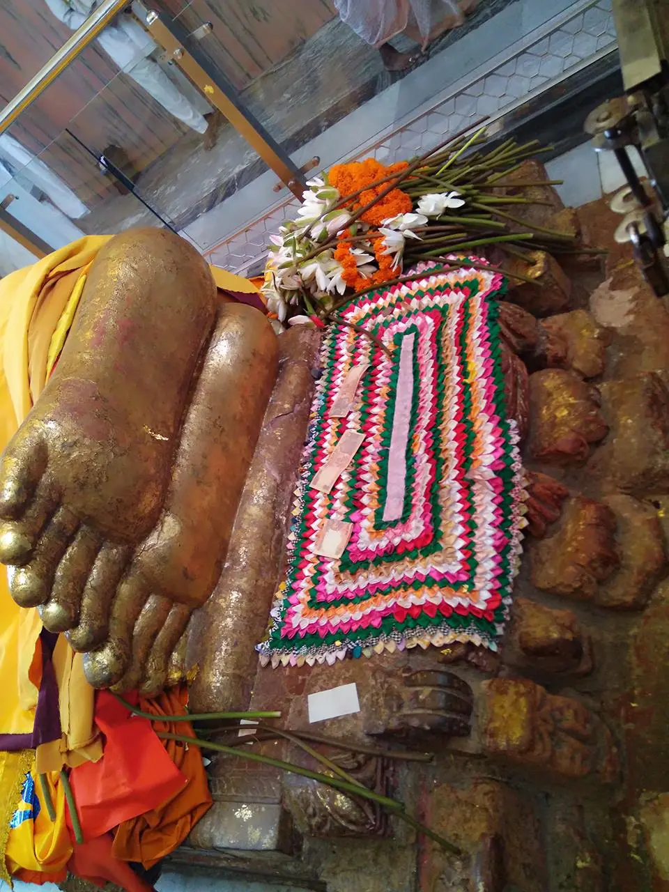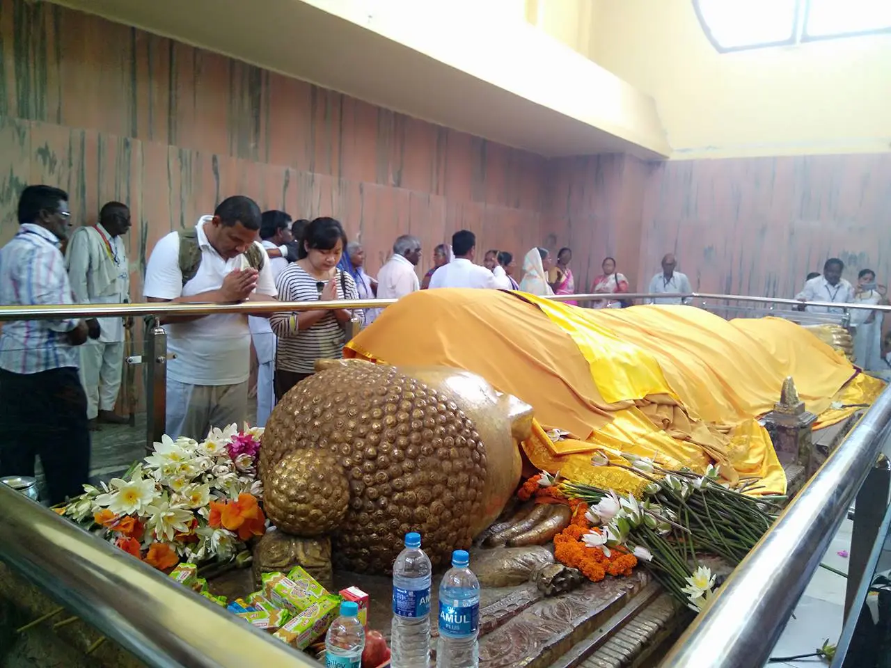 ในการเดินทางมาที่นี่นั้นบ ส่วนมากคนที่มาเคารพนั้นจะมีการกราบในส่วนของฝาเท้า ครั้งแรกที่เรานั้นได้ไปสักการะในตอนนั้นยังไม่ค่อยมีในส่วนของนักแสวงบุญไปที่อินเดียมากนัก ในเรื่องของรั้วนั้นจะยังไม่มีการที่จะล้อมไว้ สามารถที่จะเข้าสัมผัสได้ในทุกส่วนของสรีระพระองค์ แต่หลังจากนั้นห้าปี กลับมาอีกครั้งตอนนี้เรานั้นไม่สามารถที่จะเดินเข้าไปได้แล้ว มีในส่วนของรั้วบดบัง การปิดทองนั้นที่นี่จะไม่ค่อยนิยมให้สัมผัส