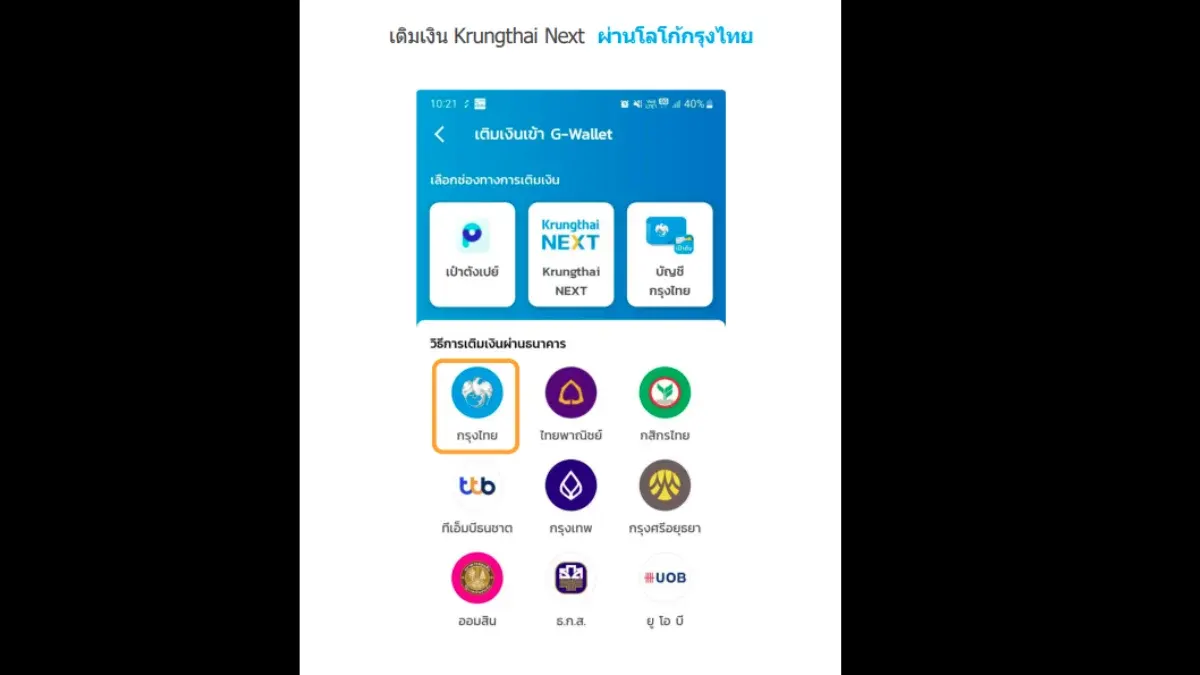 - เดิมเงิน Krungthai NEXT ผ่านโลโก้กรุงไทย