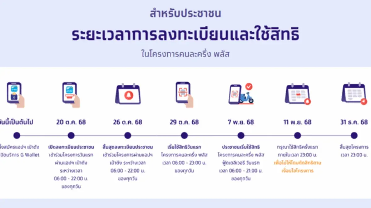 สามารถเริ่มซื้อสินค้า และบริการกับร้านค้าที่เข้าร่วมโครงการคนละครึ่ง 2568 ได้ตั้งแต่วันที่ 29 ต.ค. 68 เป็นต้นไป